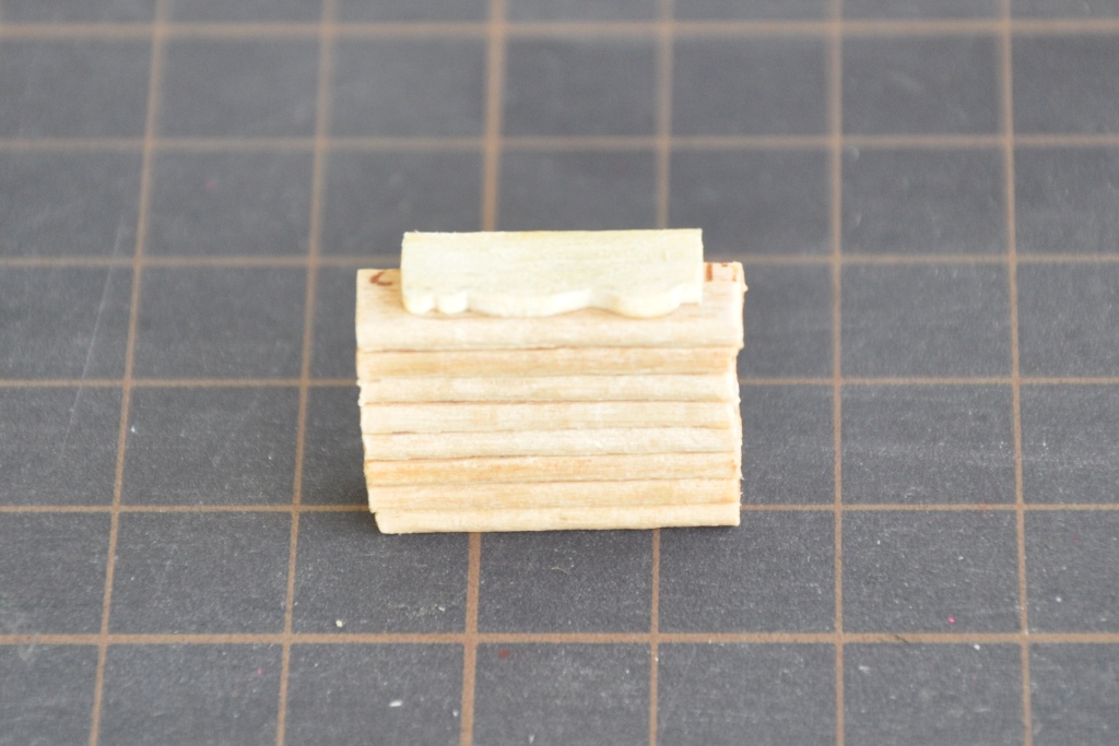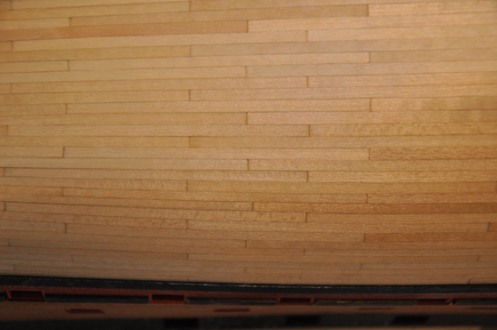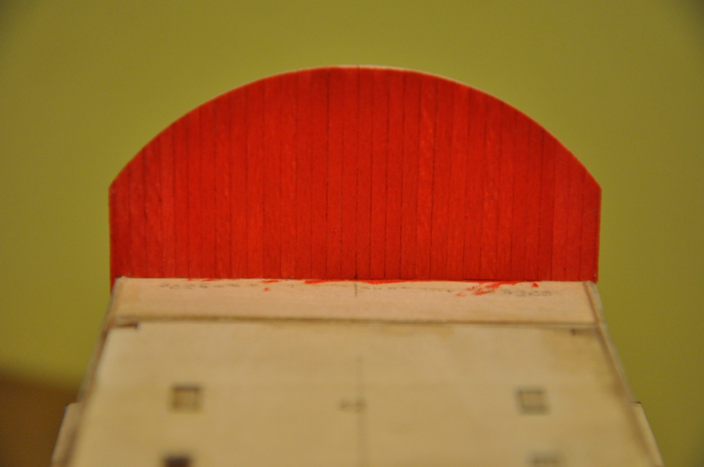 planki poszycia kleję tak samo jak poprzednio wiedząc, że i tak sporo zakryją dekoracje, ale jak się bawić to się bawić :D , po przyklejeniu wszystkich planek będzie jeszcze lekkie szlifowanie i poczernię całość jeszcze raz likwidując jasne miejsca na styku listewek