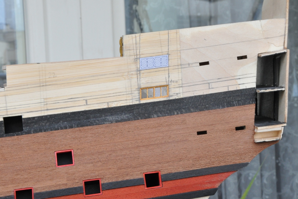 No właśnie (wiem, nie powinno zaczynać się tak zdania), masz rację Ryszardzie, w sumie sam zauważyłem, że taki układ okien robi wrażenie jakby "leciały", patrząc na cały model może tego tak nie widać ale na powiększonym zdjęciu już bardzo rażą. Niestety nie posiadam planów i robię podglądając wszystko i wszystkich co znajdę w internecie. Po niedzieli poprawię projekt na okna, gdzie dłuższe krawędzie będą równoległe do bocznych galerii, a boczne prostopadłe do linii wodnej (pierwotnie zasugerowałem się kształtem jaki zaproponowali w DeA)