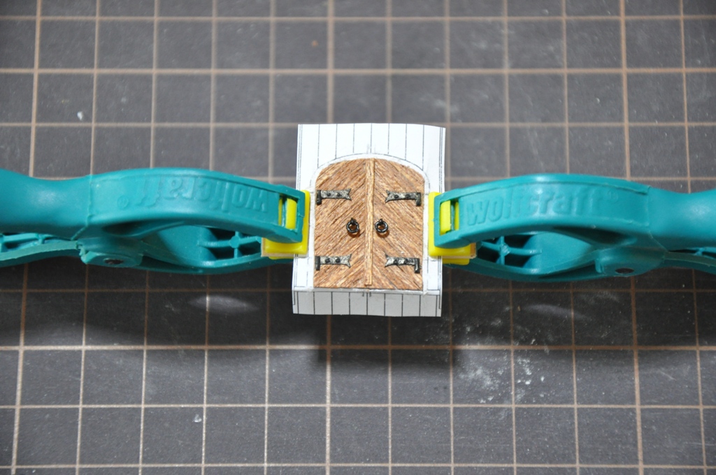 teraz pora na zawiasy (wykonane z papieru, z jednej strony papier zamalowany tuszem, z drugiej wzmocniony klejem CA, tuleje zawiasów wykonane z kropli kleju)