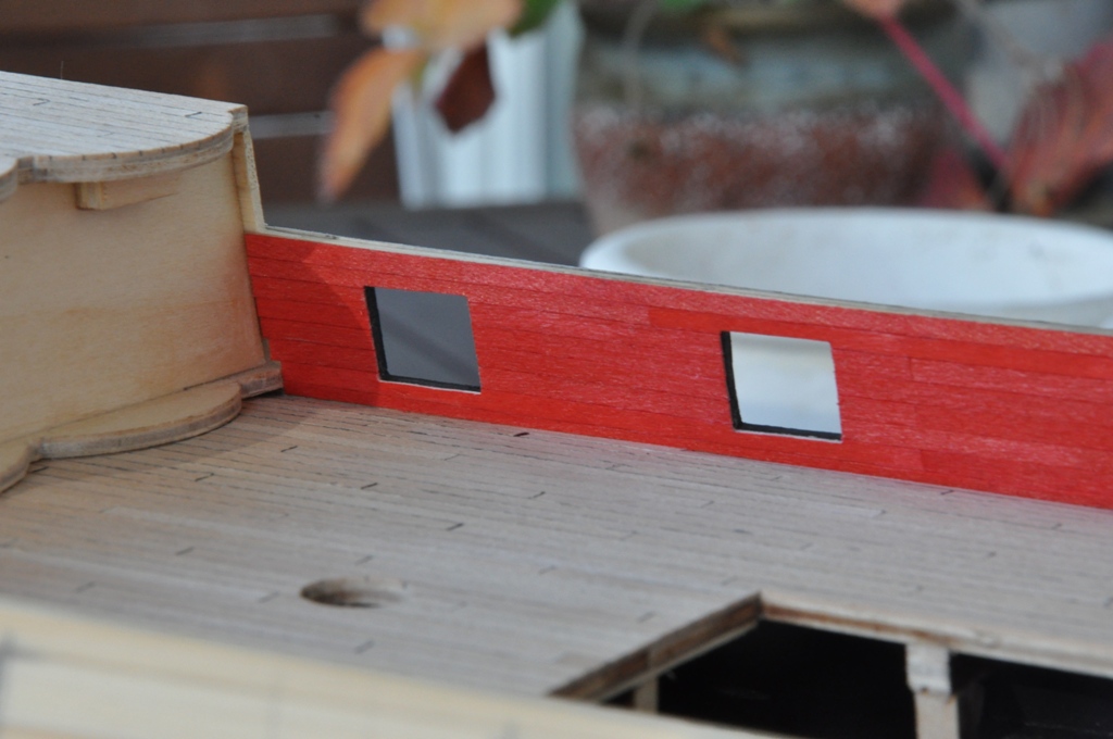 3. deskowanie ścianki rufowej (u mnie będzie czerwona a nie czarna jak w instrukcji)