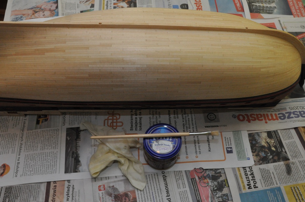 4. dojrzałem też w końcu do pokrycia części podwodnej pokostem lnianym (pokost marki Vidaron)