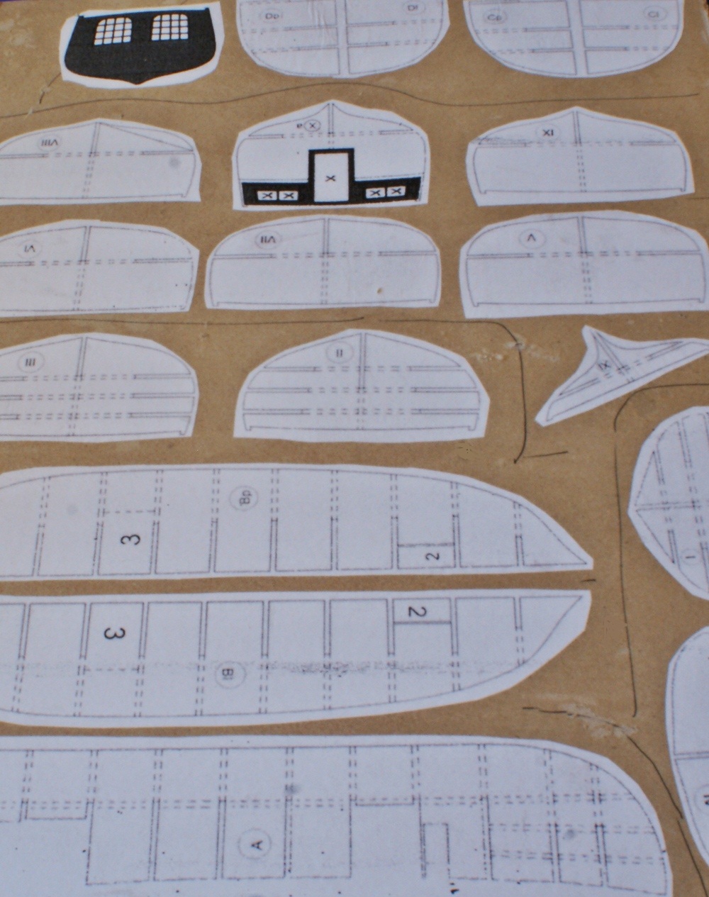 Szkielet kadłuba zostanie wykonany z tektury 3 mm, wypełniony pianką lub styrodurem, a cała reszta to fornir.