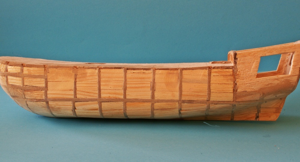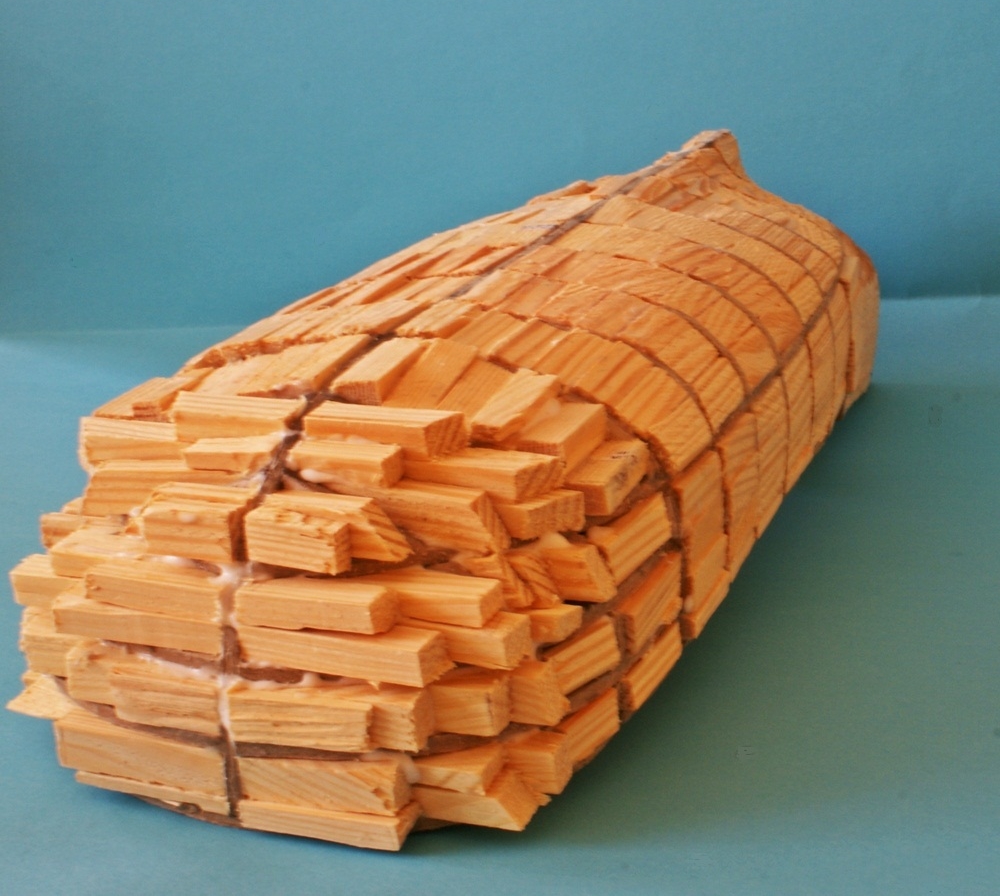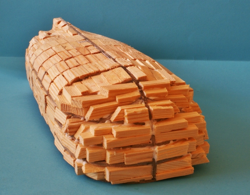 W ten sposób wypełniam kadłub. Początkowo myślałem o piance lub styrodurze, ale doszedłem do wniosku, że drewienko będzie lepsze.