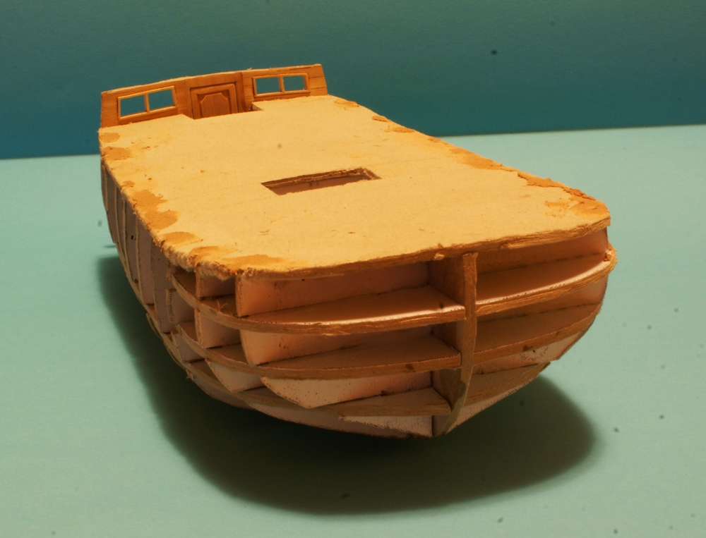 Szkielet kadłuba zostanie wykonany z tektury 3 mm, wypełniony pianką lub styrodurem, a cała reszta to fornir.