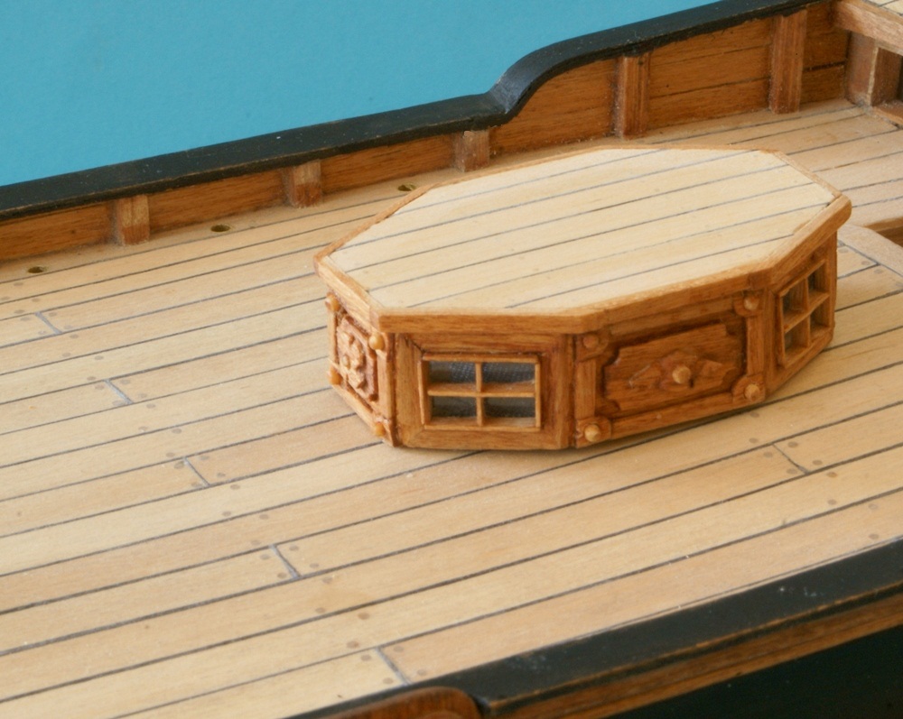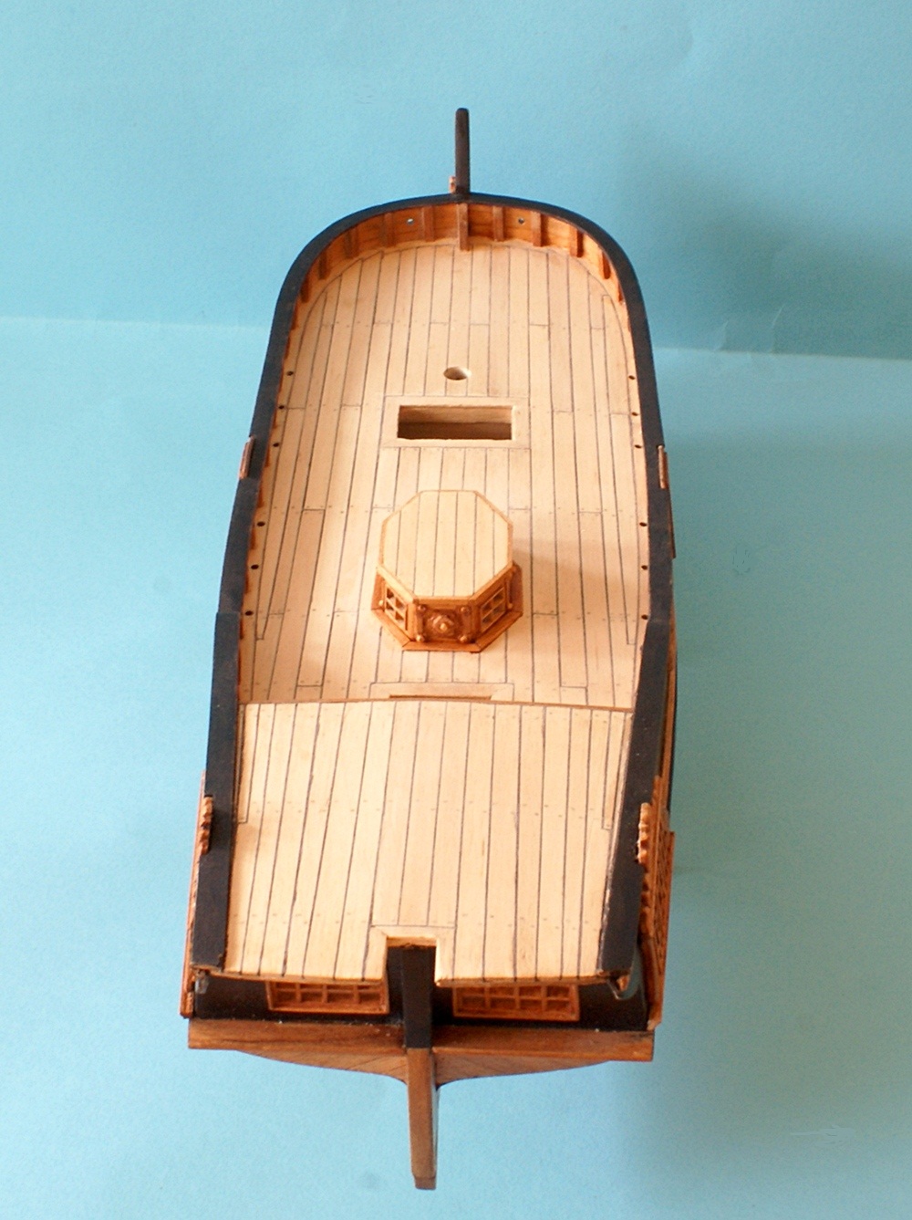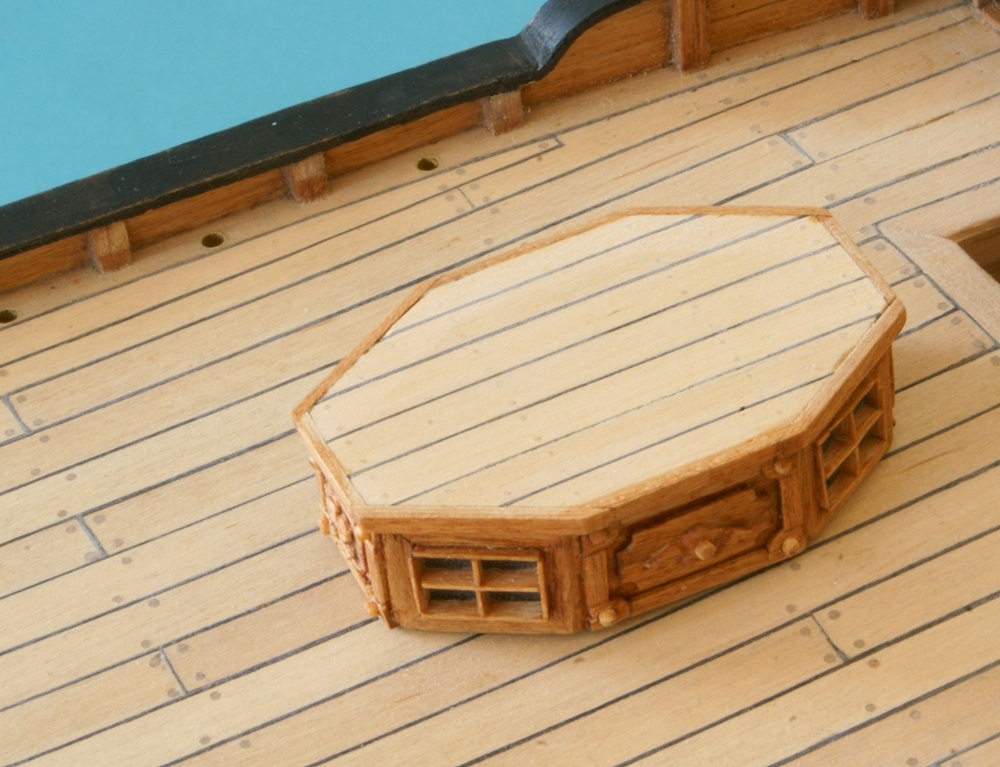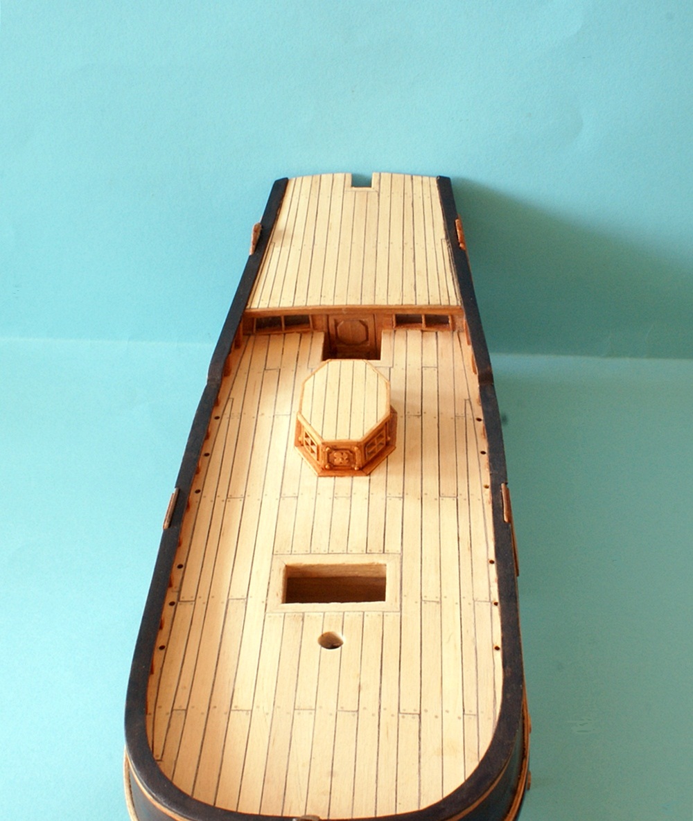 Ciąg dalszy "zabawy" po weekendzie. Świetlik postawiony jest na pokładzie "na sucho". Po przyklejeniu, dojdzie jeszcze listwa przy pokładzie (dookoła świetlika).
