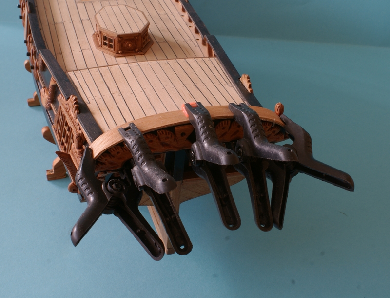 Kolejne dwie ozdóbki na rufie. Jeszcze tylko relief na górnym fryzie i będzie można zabrać się za wyposażanie pokładu.