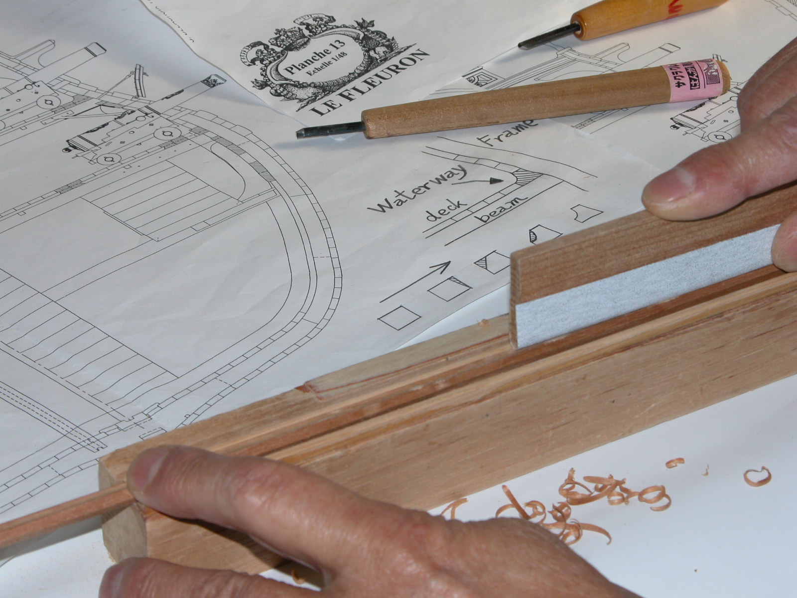 Oczywiście że lita listewka była by najlepsza. Wybrał bym również listewki do poszycia kadłuba, niestety mam tu do dyspozycji tylko fornir i najprostsze narzędzia. :(