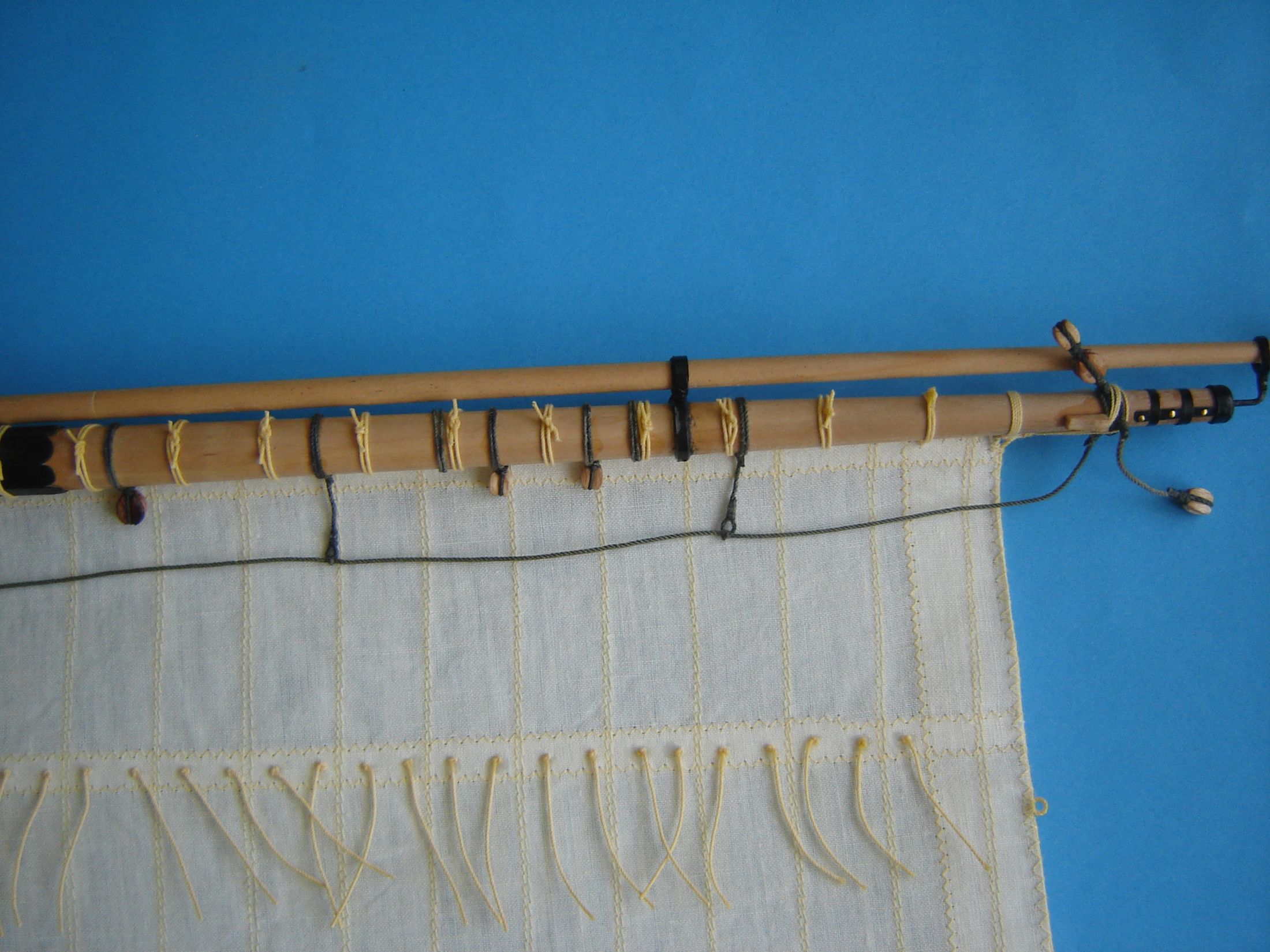 Od Sławka Kromera otrzymałem takie oto materiały dotyczące sposobu wiązania żagli. Jest bardziej autentyczny. Wybrałem sposób z podwójną linką.