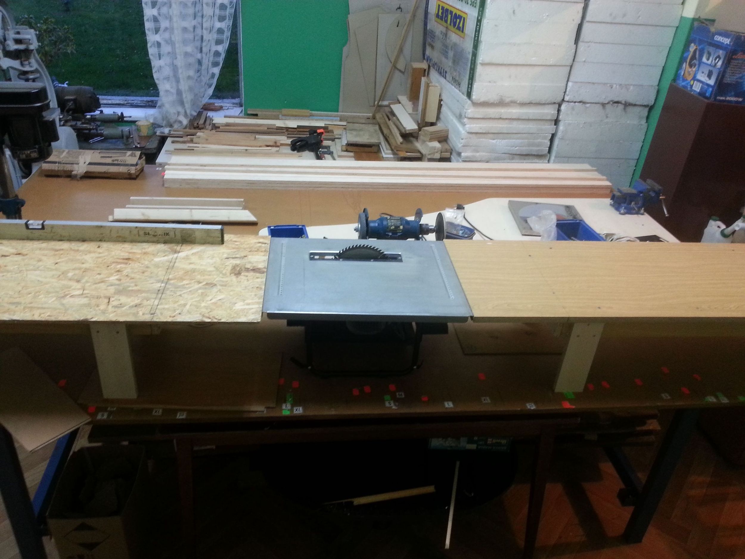 Aby ułatwić sobie cięcie sklejki dorobiłem do swojej stołowej piły tarczowej takie stoliki.