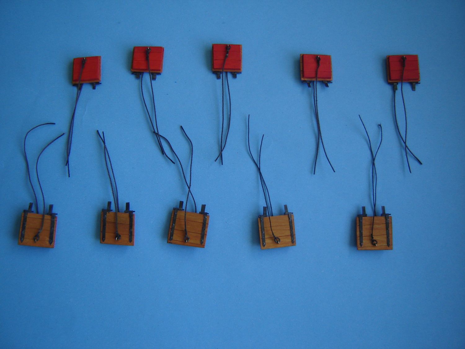 Wykonałem klapy furt działowych. W moim modelu w/g wycinanki z Shipyardu jest 10 klap furt działowych.
