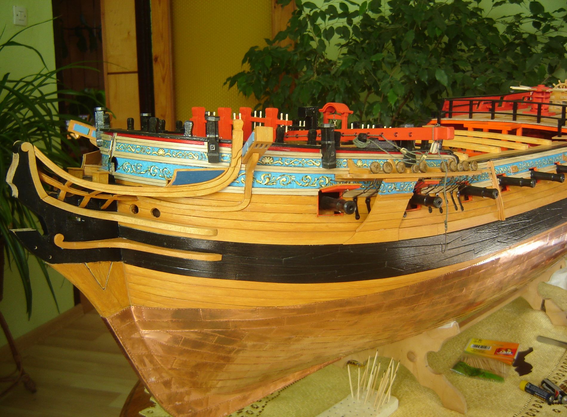 W ramach małej odskoczni od modelu postanowiłem, że wezmę się za budowę szalupek. W moim modelu będą 4 szlupy. Odpowiednio o długości 17, 23, 24 i 27 cm. Nie posiadam żadnych planów a model buduję w skali 1:32 czyli na podstawie trzykrotnie powiększonej wycinanki. Początkowo miałem zamiar wybudować szalupy na 4 kopytach. Ale po gadce na SB otrzymałem od Kazka link do jego relacji z budowy Hiszpańskiej Galery La Real.