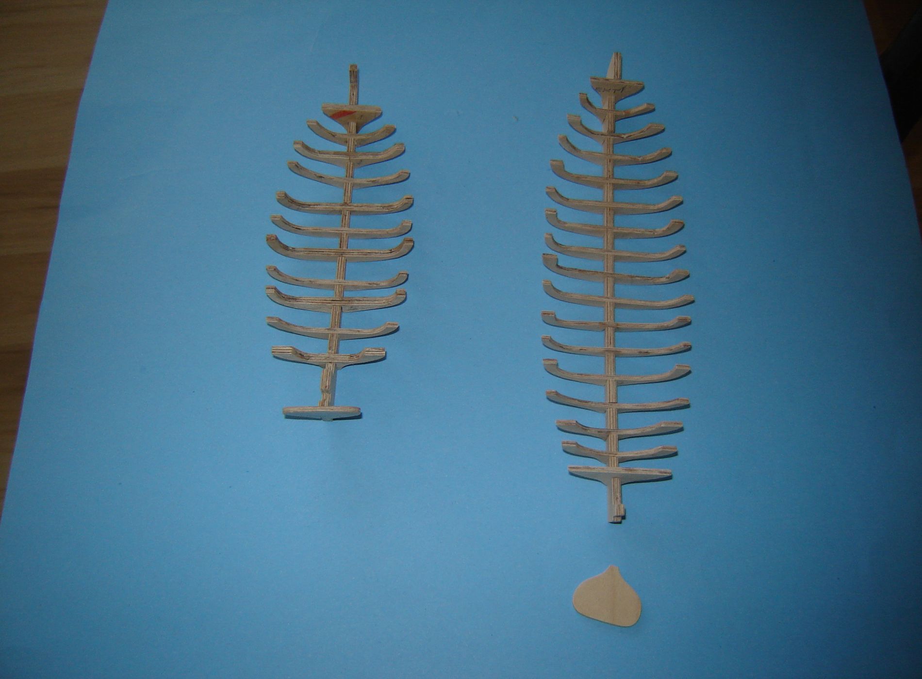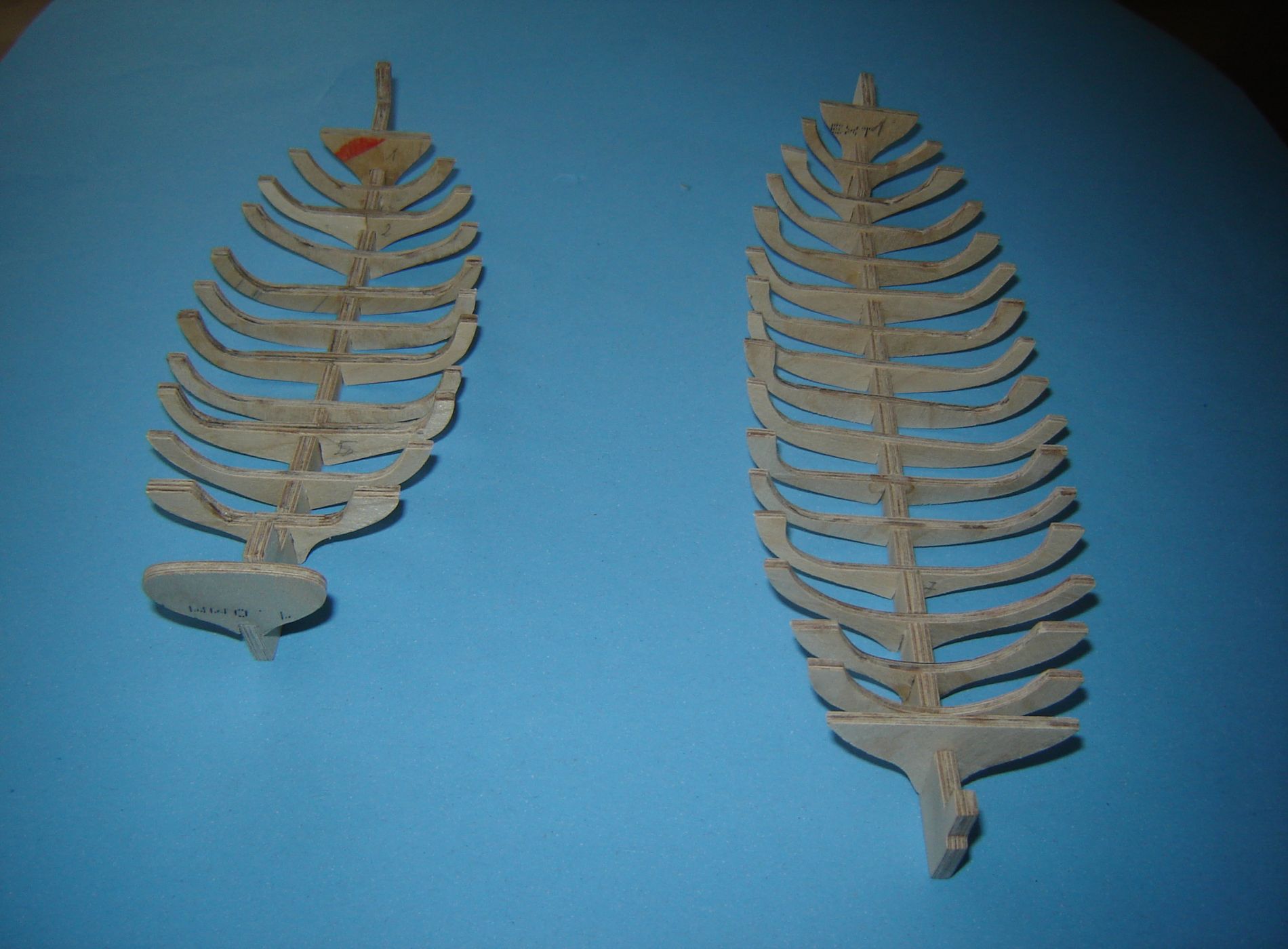 Tak to wygląda według wycinanki. Mniejsza szalupa ma 6 wręg a większa 9. Prawie wszystkie wręgi są pełne.