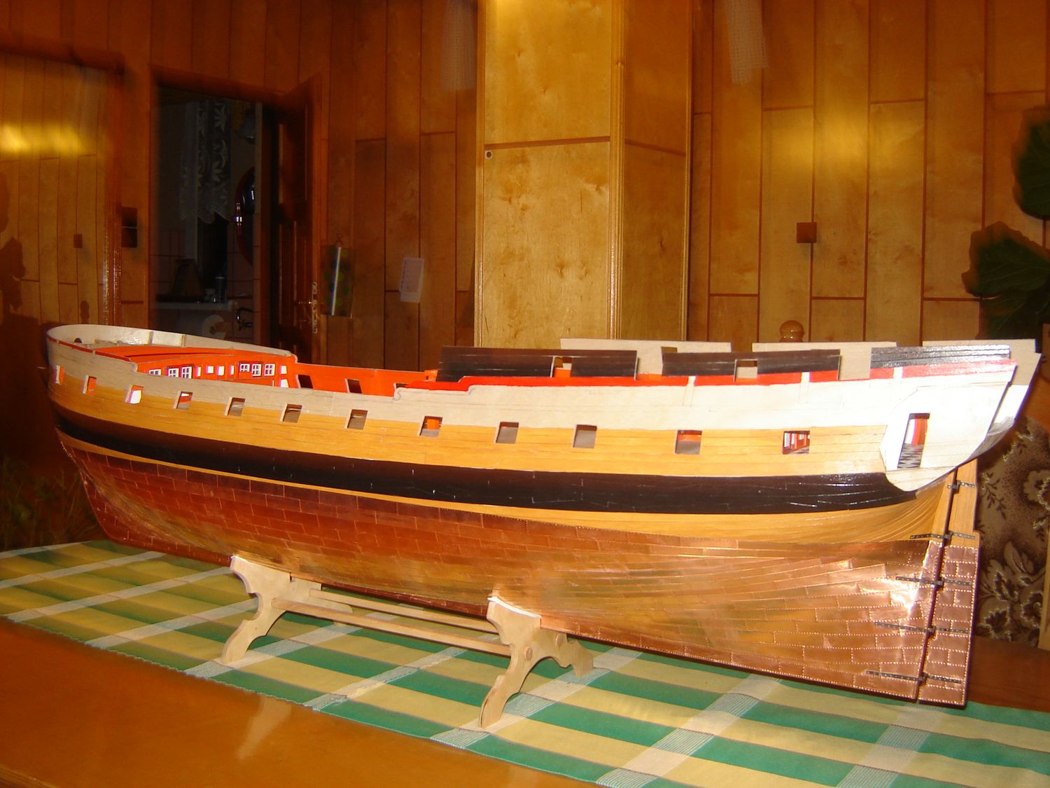 Powstaje fajny model słusznych rozmiarów. Pokładem, się nie przejmuj, kolejne zrobisz z odpowiedniego materiału i będzie ok. Proponuję ścianki działowe zrobić w jednolitym kolorze, bez tych białych wstawek - będzie lepiej wyglądało i bardziej odpowiadało rzeczywistości.
