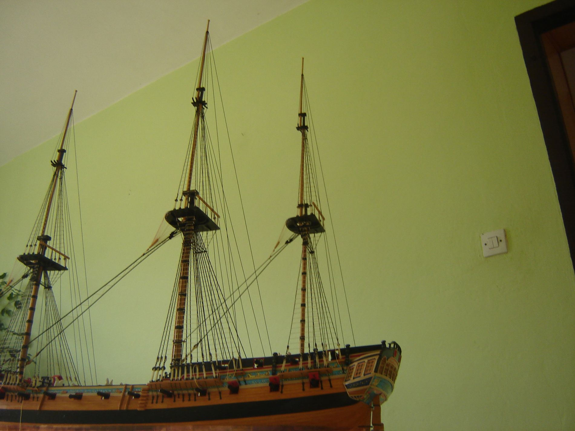 Dzięki chłopaki. Tomek masz rację naprawdę śniły mi się w nocy wyblinki – ciągle wiązałem supełki. Piotrek na razie przykrywam model folią, ale gablota oczywiście będzie. Przerażają mnie tylko trochę jej rozmiary. Musi być wysoka na 170 cm, długa na 190 cm , ale jeszcze nie zadecydowałem co do jej szerokości. Przy podstawowych żaglach miała by około 70 cm szerokości, ale mam ochotę zamontować żagle wytykowe a wtedy gablota musi mieć co najmniej 120 cm szerokości. Ostatecznie to nie problem bo mam duży dom i sporo miejsca na model, ale gablota będzie ciężka. Jeszcze upłynie trochę czasu zanim zacznę montować żagle, więc mam czas żeby to rozważyć.