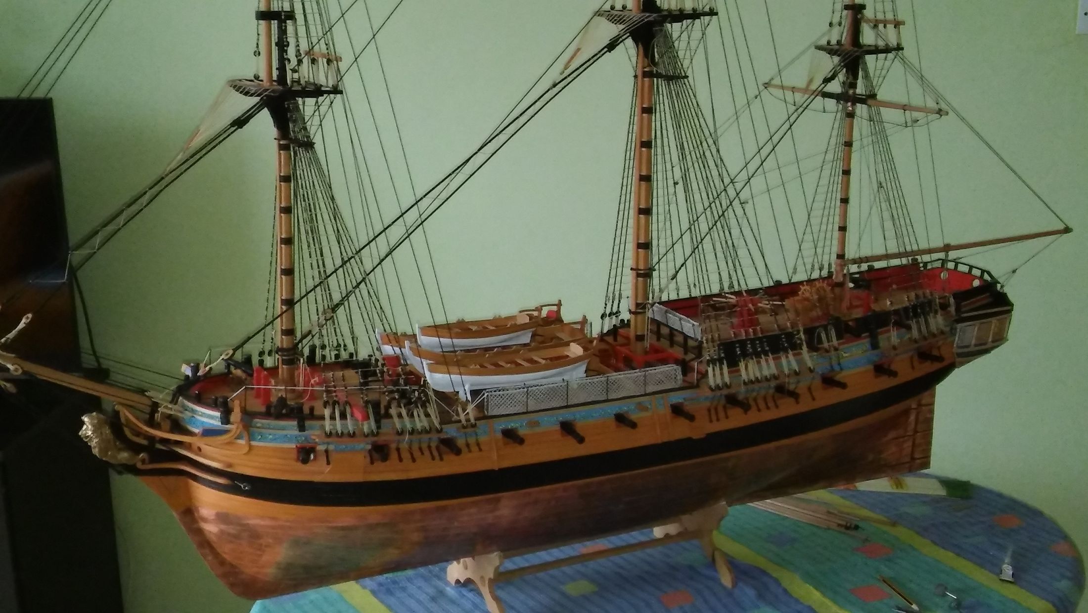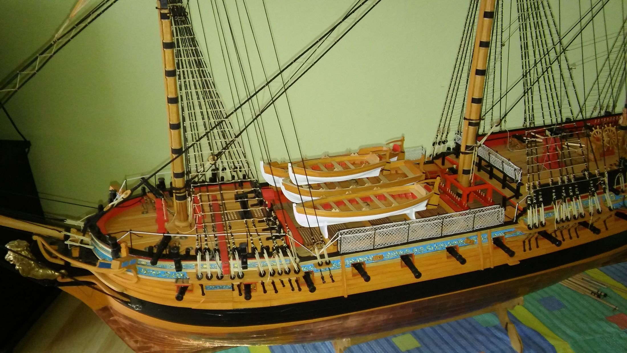 Dzięki Łukasz za miłe słowa. Rzeczywiście jarają mnie żaglowce, ale tak jak Ty potrafisz bawić się swoim modelem, tak ja bawię się swoim. Ostatnio wydziergałem sobie komplet kotwic. Na razie nie będę montował ich na modelu, ponieważ mogłyby mi przeszkadzać przy montażu ożaglowania.