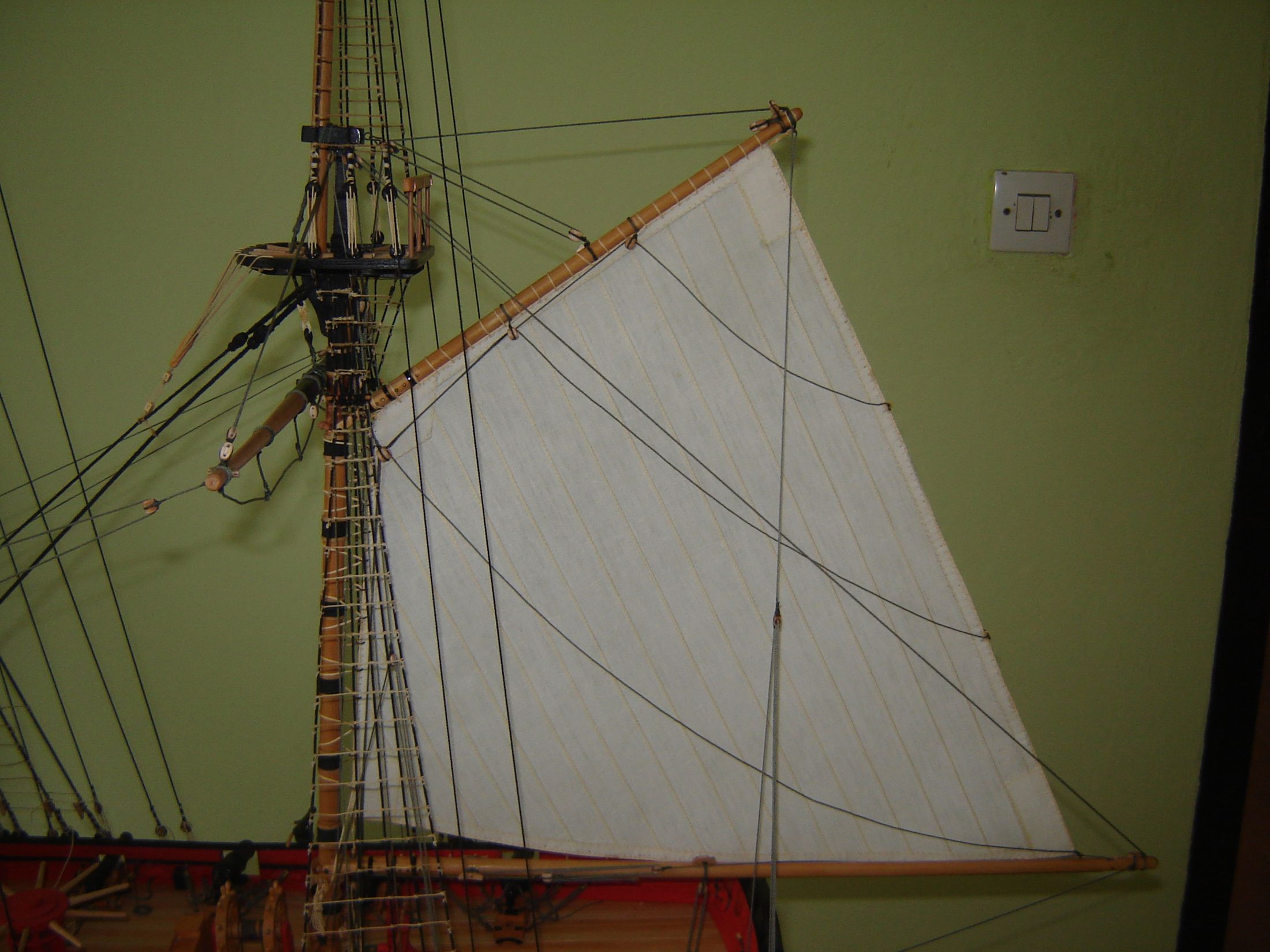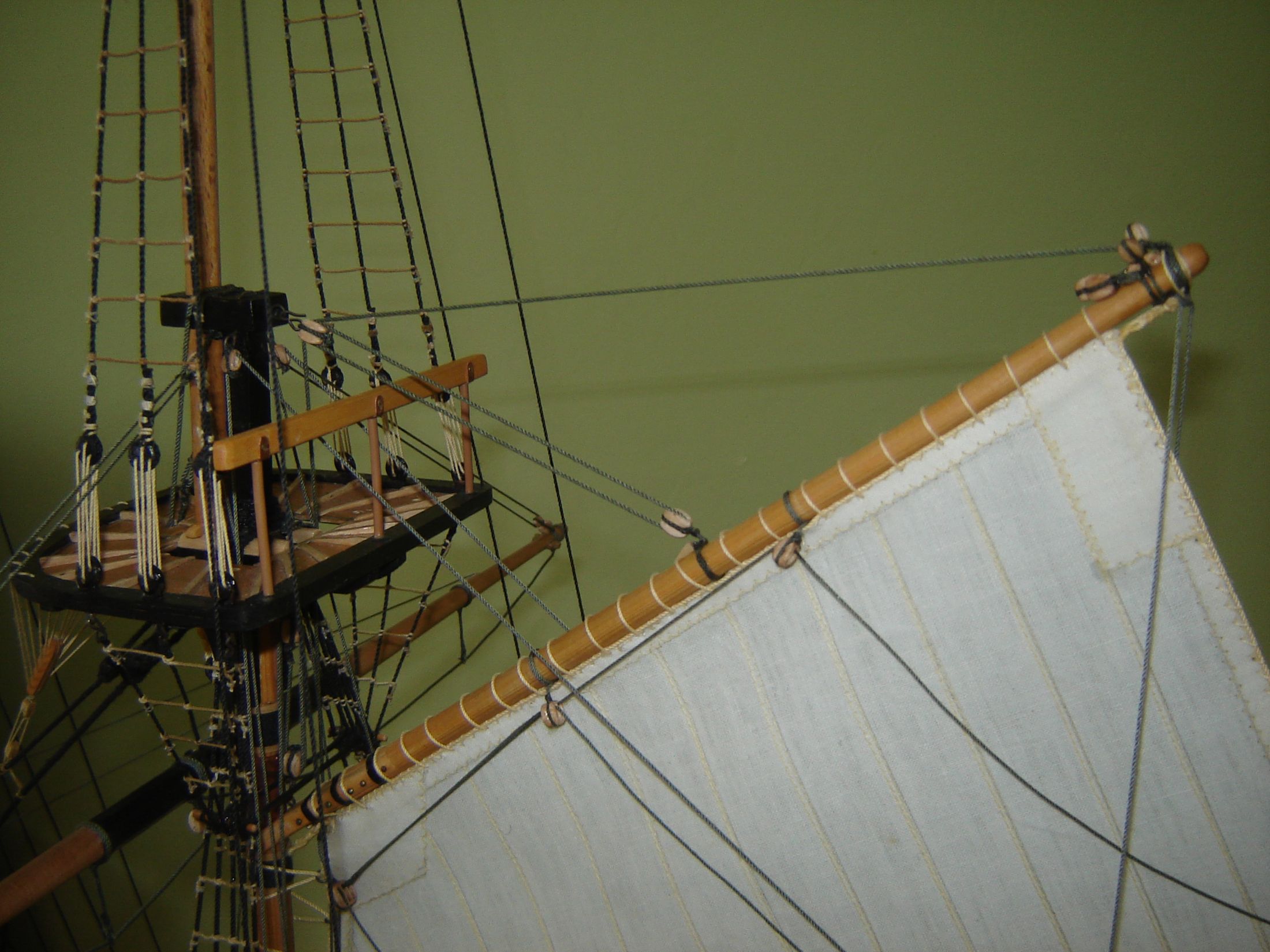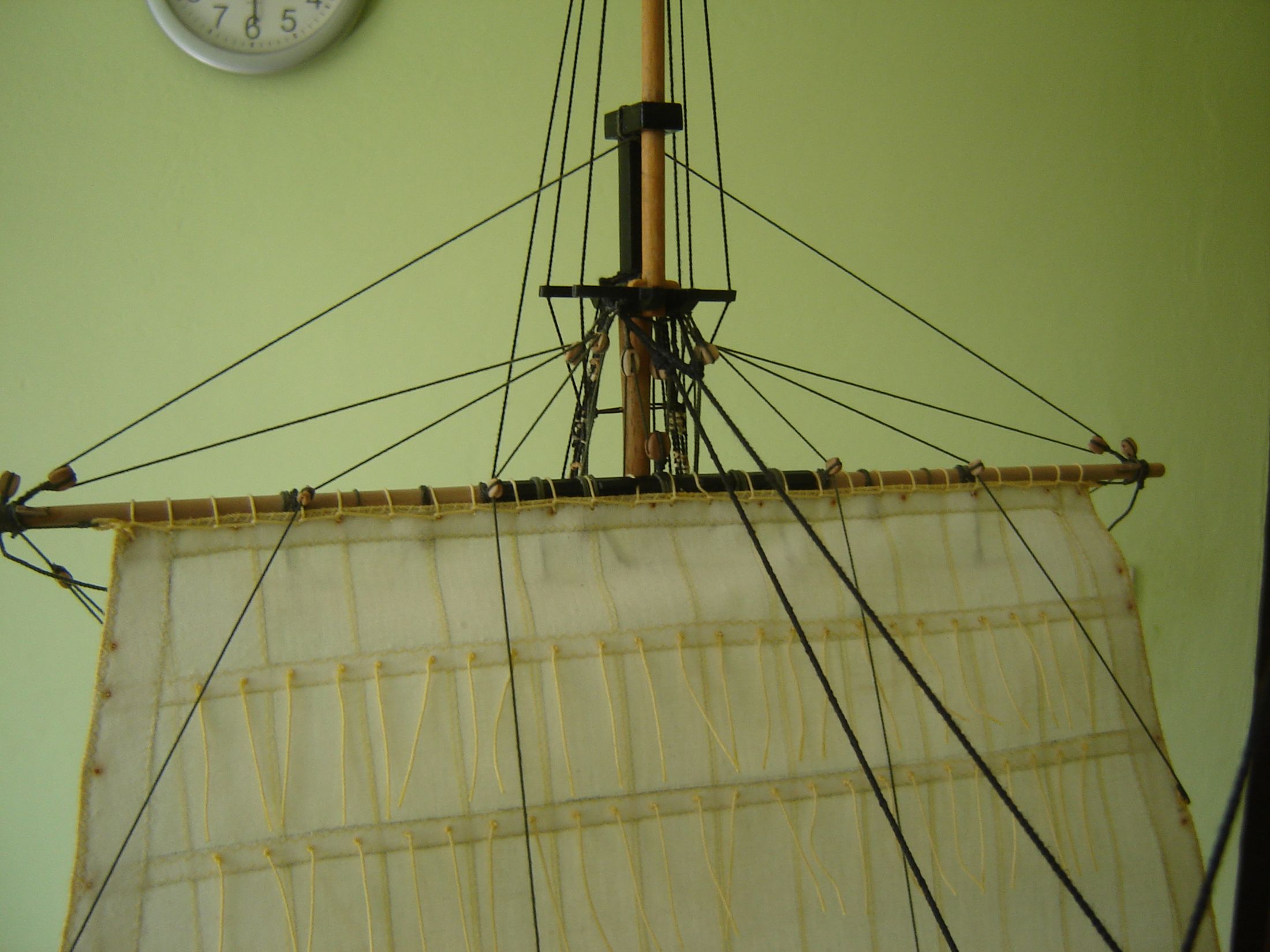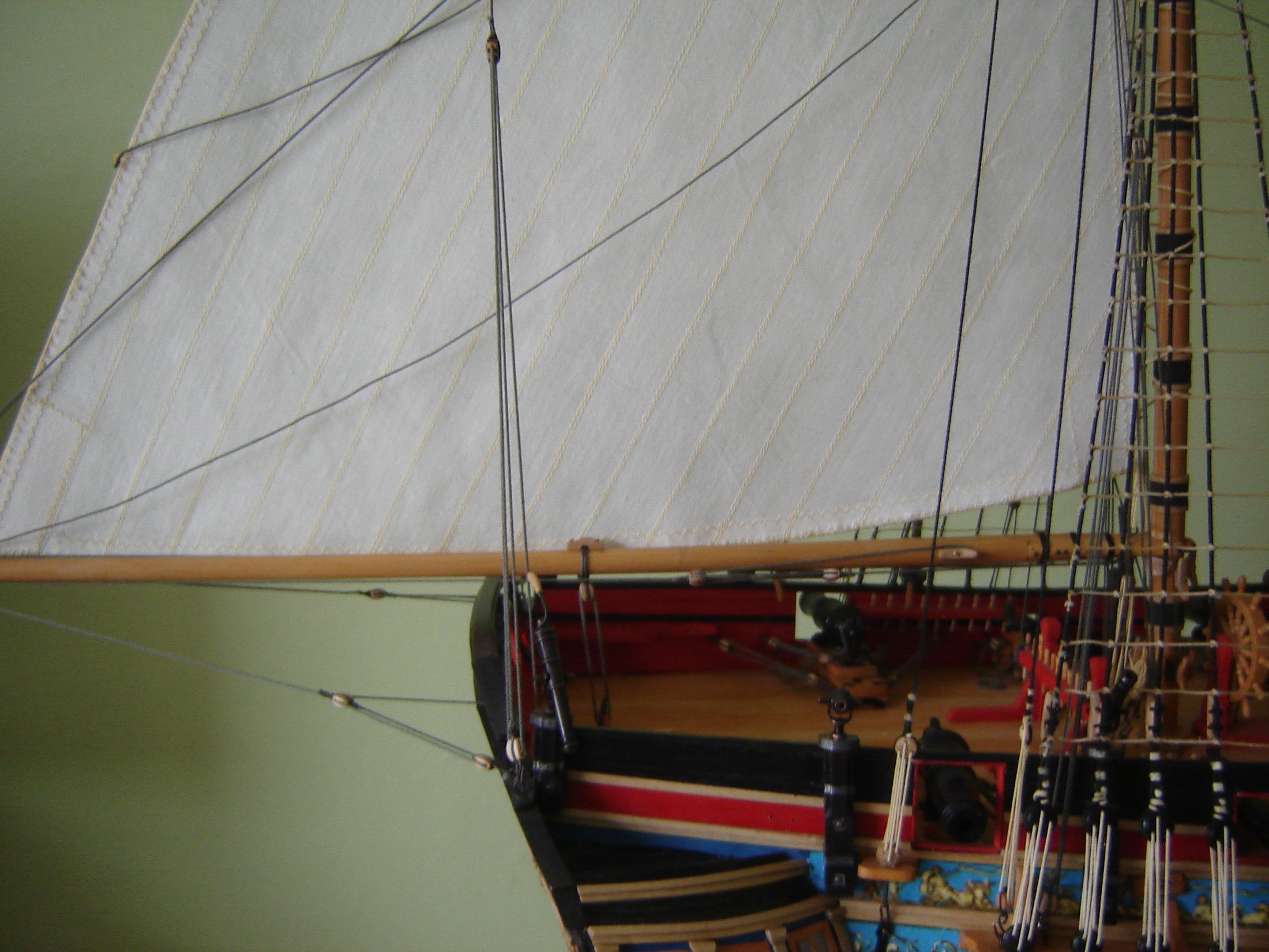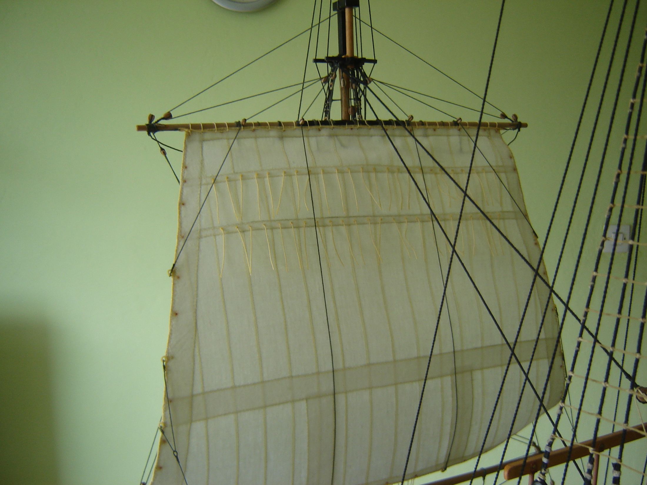 Uszyłem i zamontowałem dwa żagle bezanmasztu. Może i nie wyszły mi najlepiej ale jak na moje możliwości to myślę ze mogą być. Następne będą lepsze. Mam taką nadzieję.
