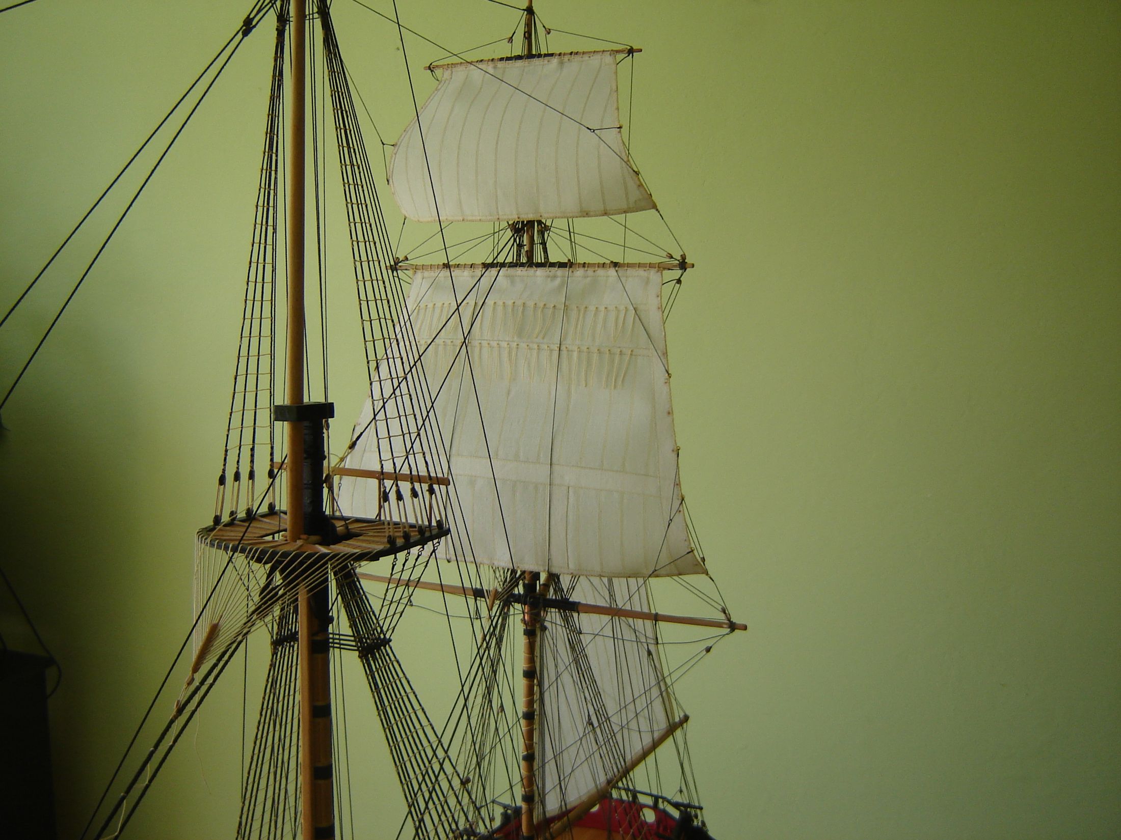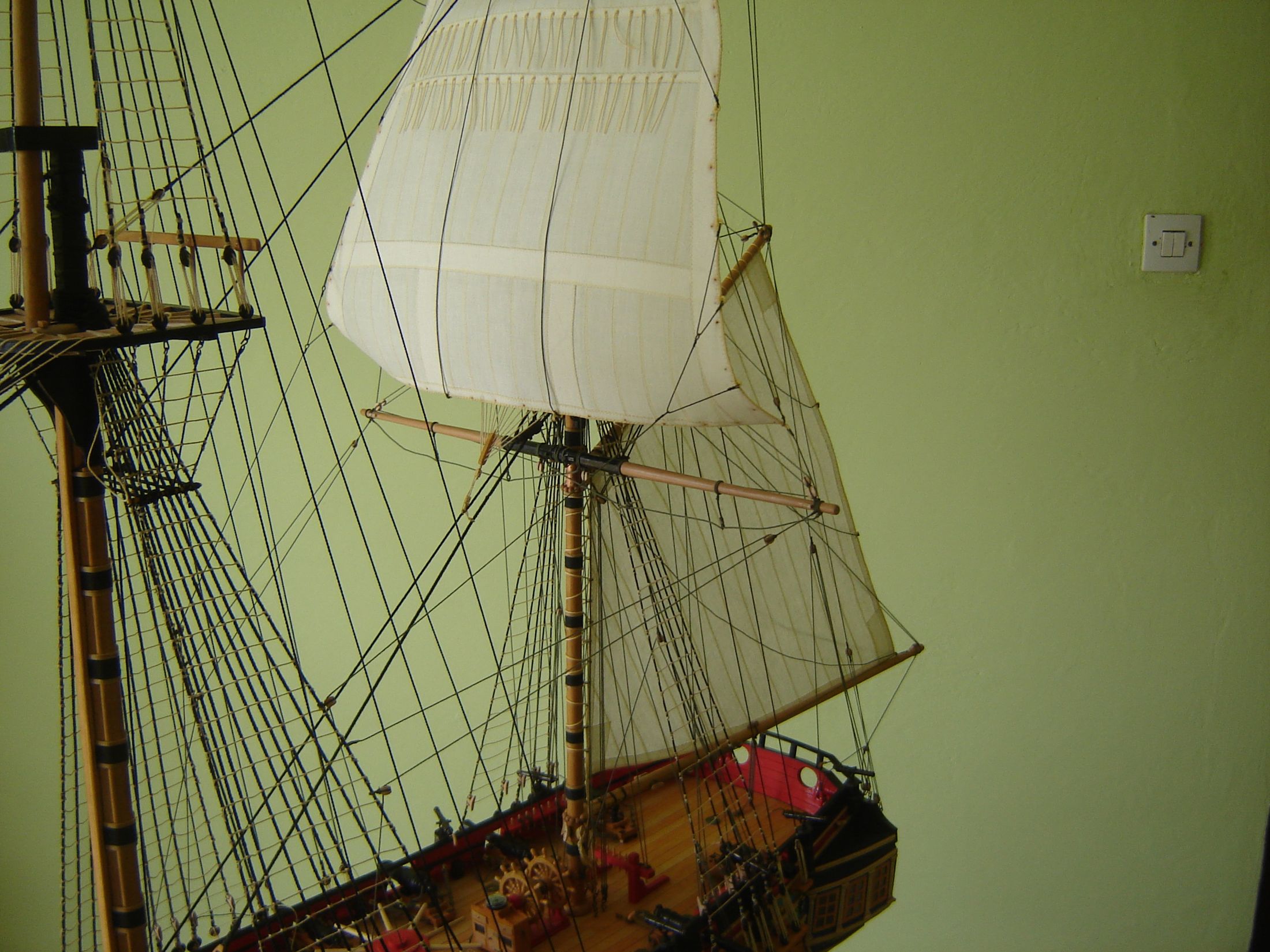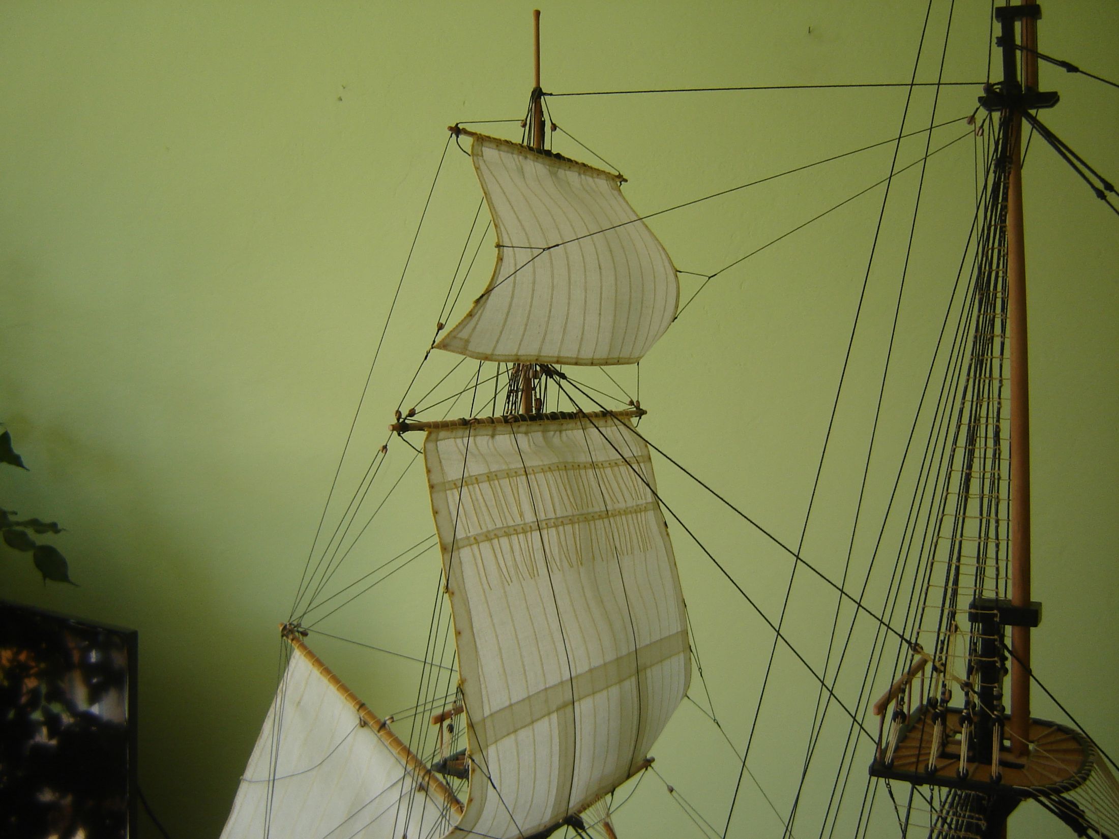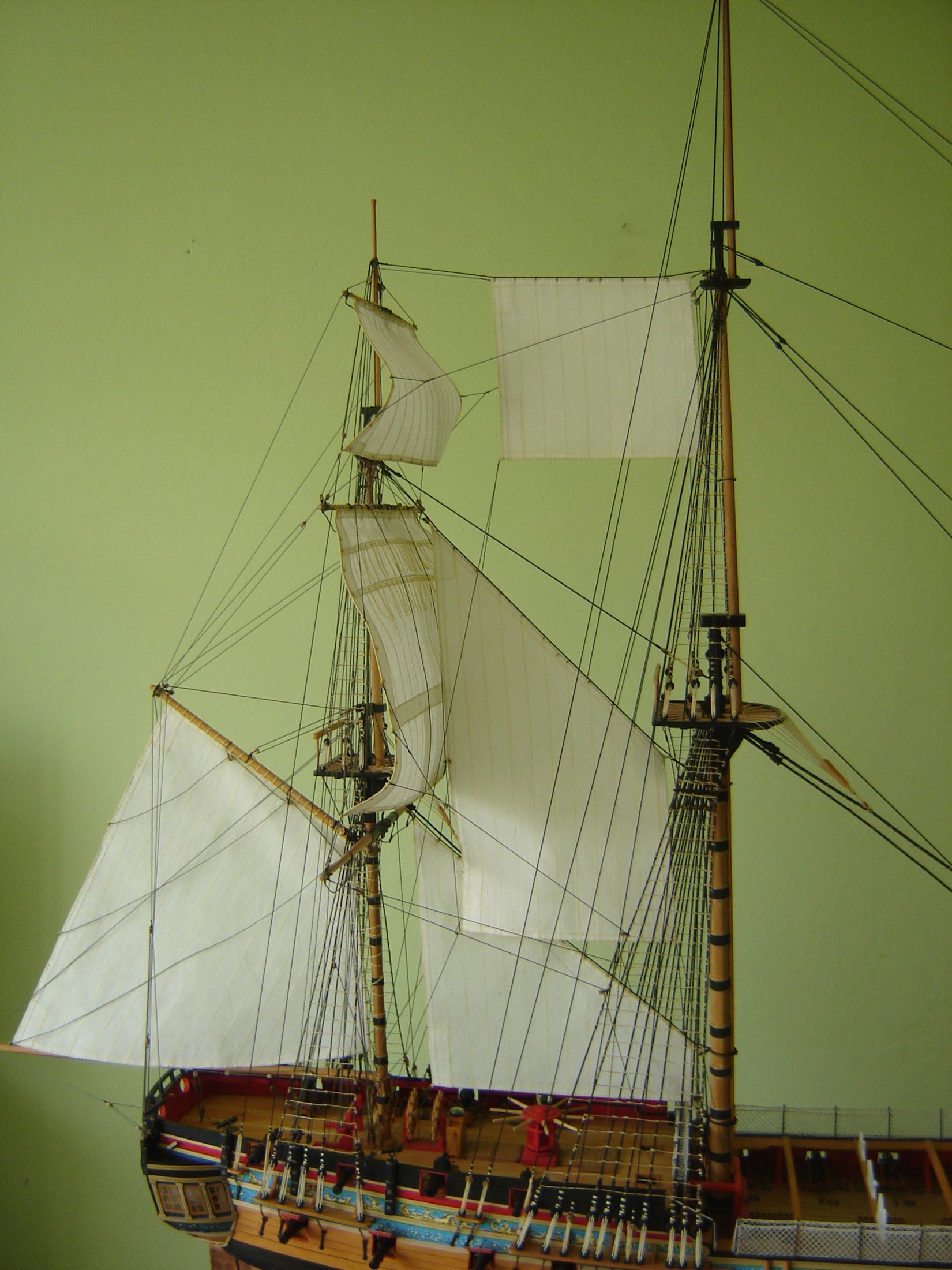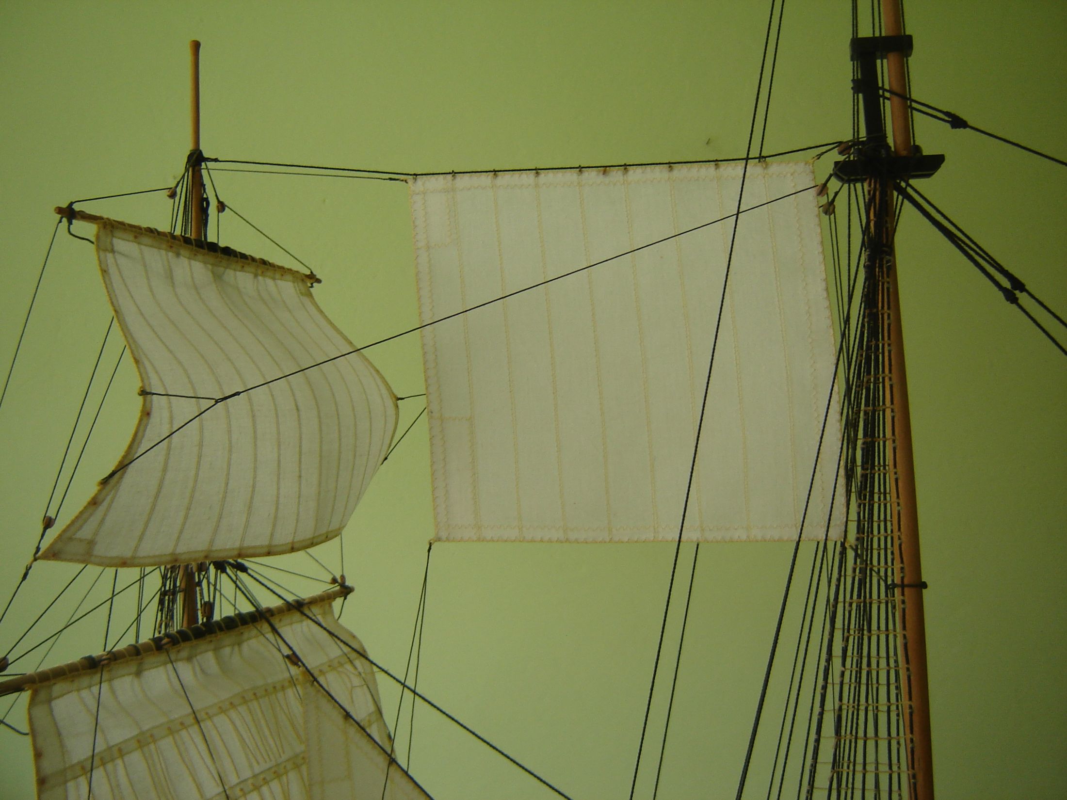 Uszyłem i zamontowałem dwa żagle bezanmasztu. Może i nie wyszły mi najlepiej ale jak na moje możliwości to myślę ze mogą być. Następne będą lepsze. Mam taką nadzieję.