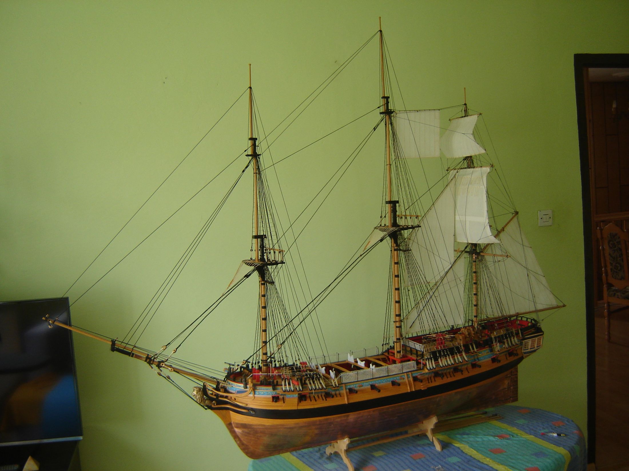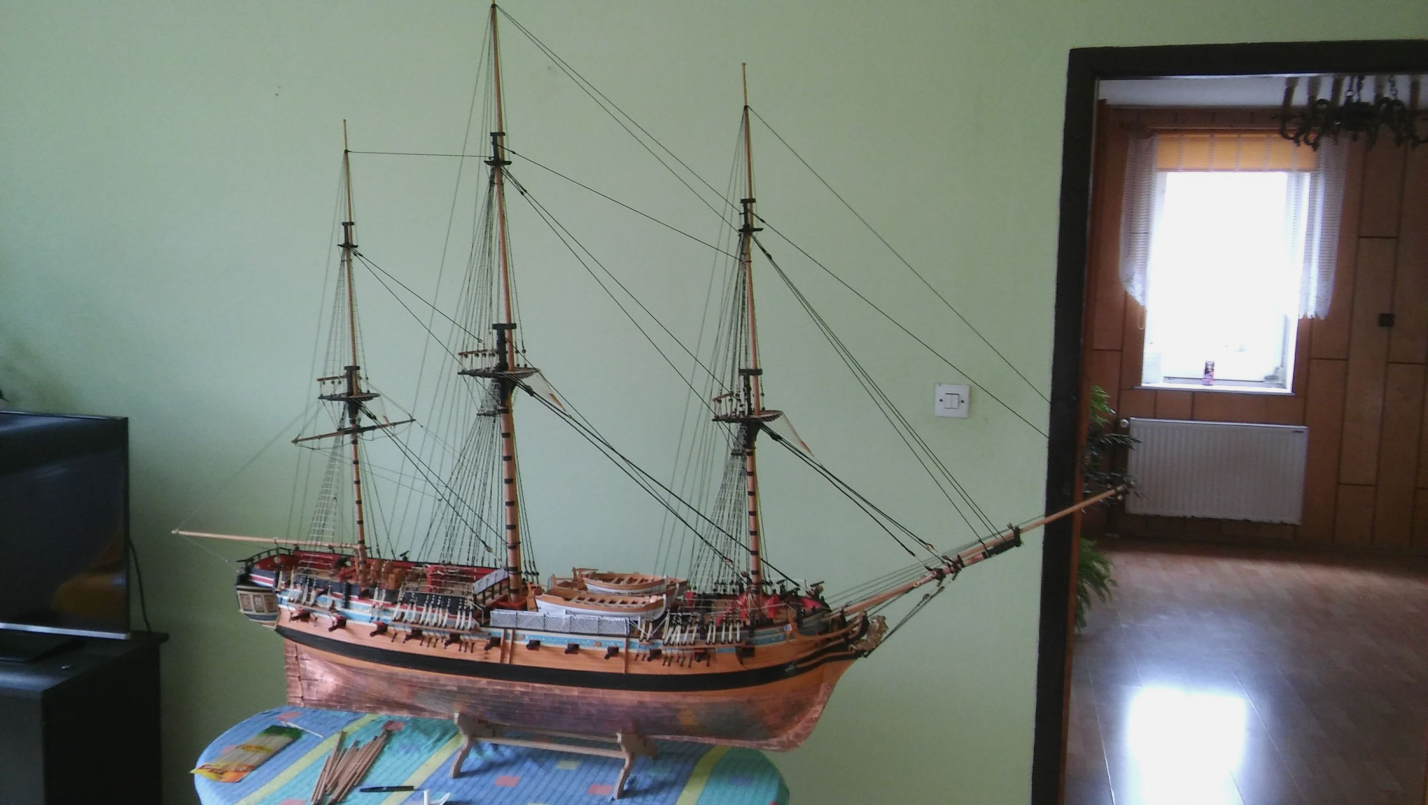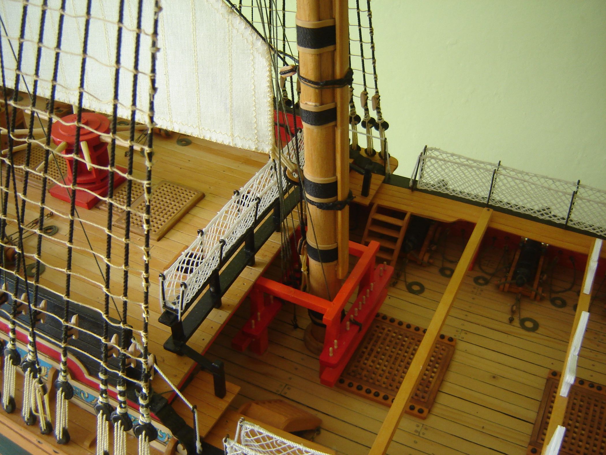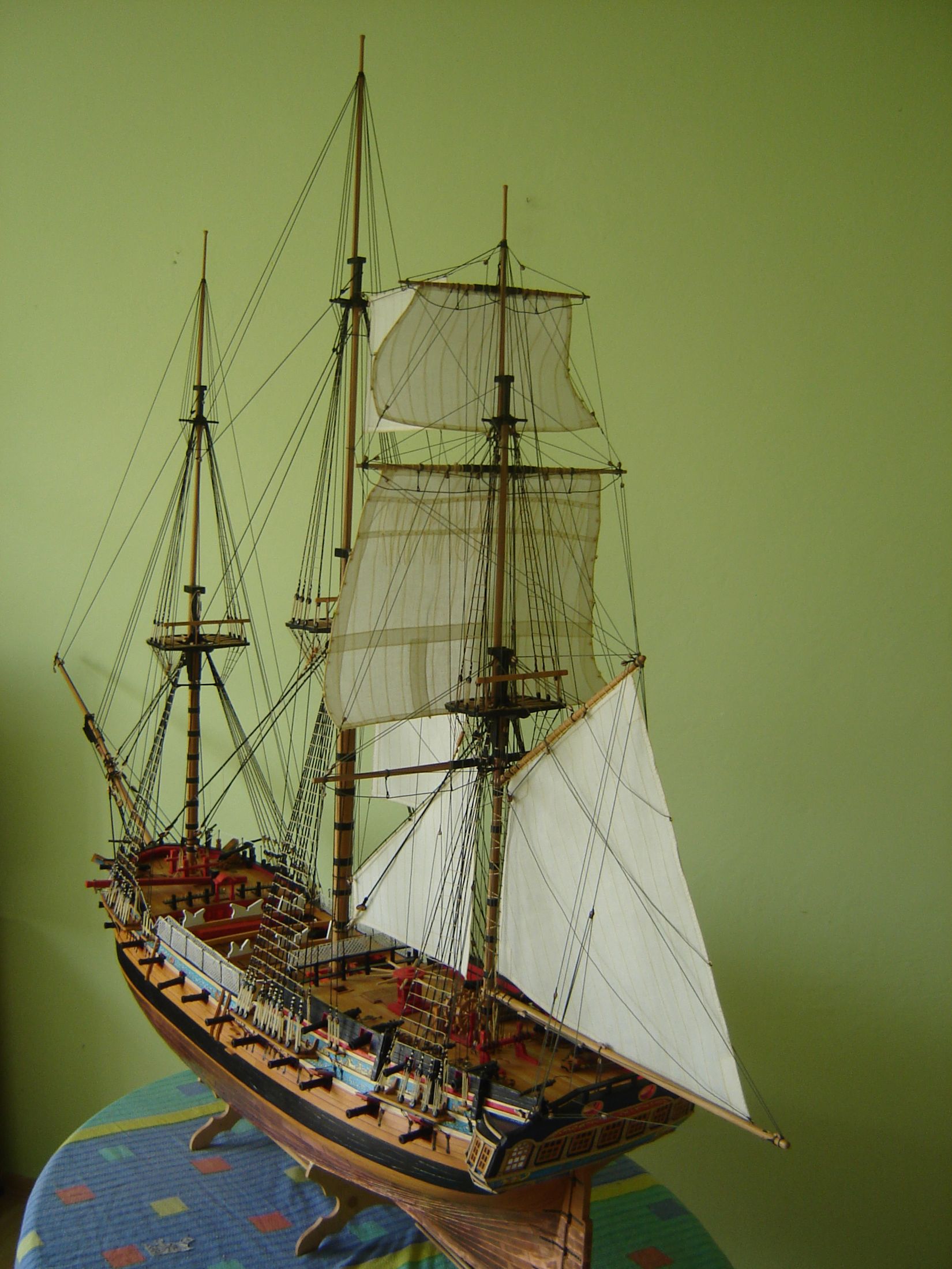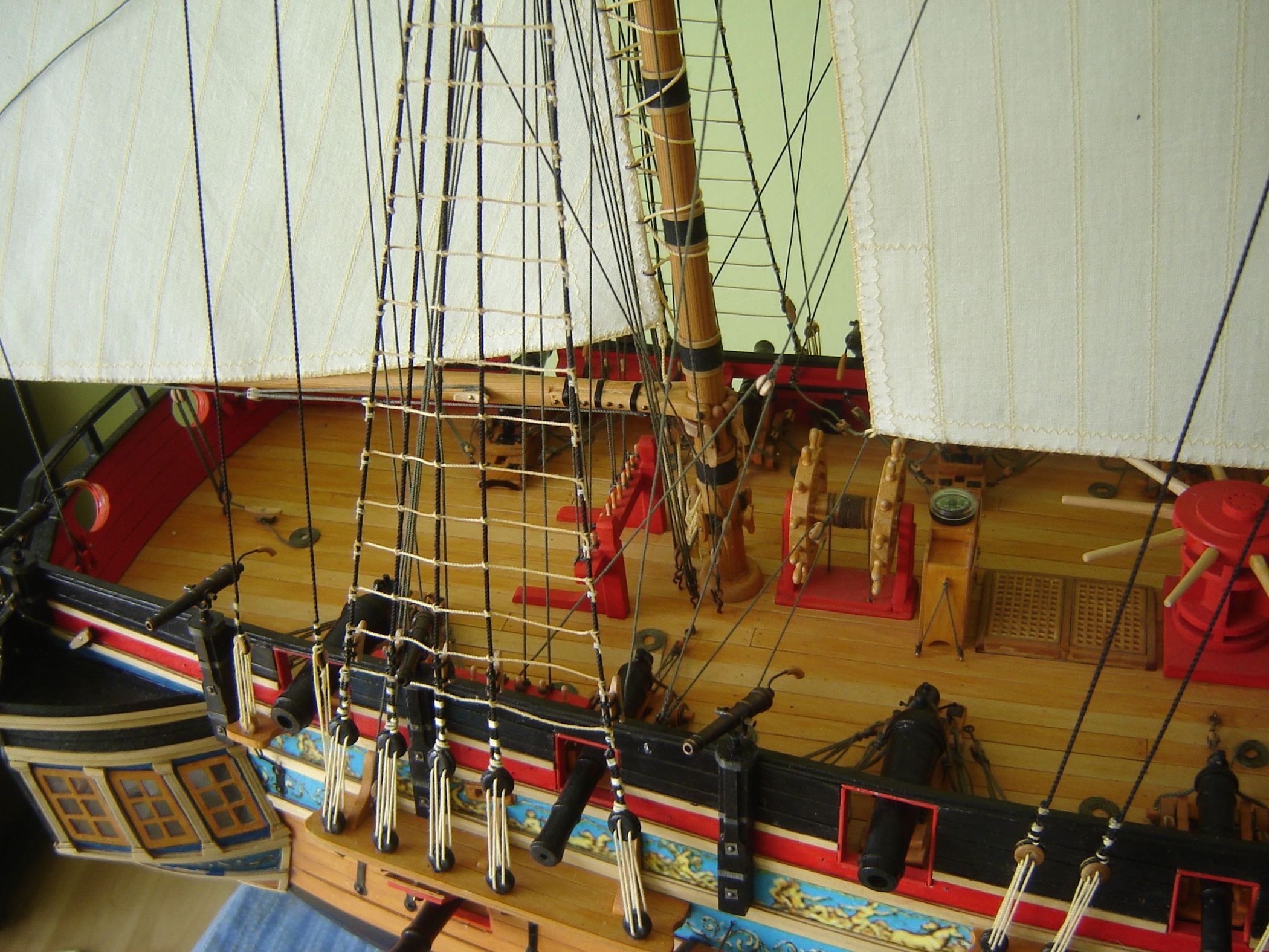 Uszyłem i zamontowałem dwa żagle bezanmasztu. Może i nie wyszły mi najlepiej ale jak na moje możliwości to myślę ze mogą być. Następne będą lepsze. Mam taką nadzieję.