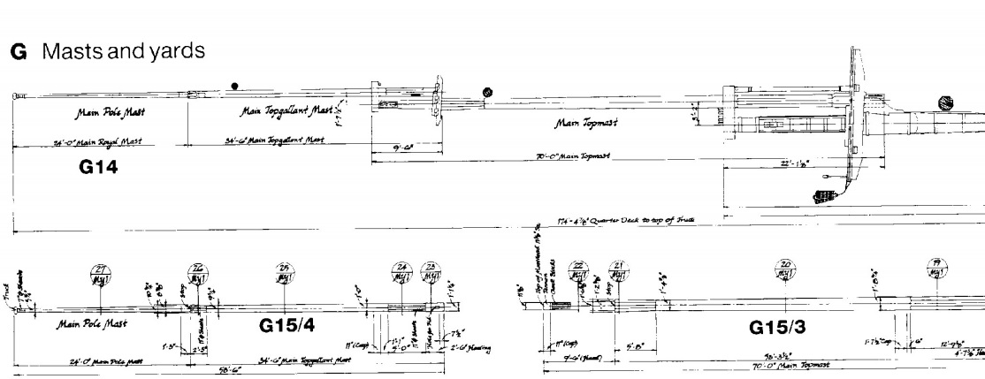 Najdłuższe reje wytykowe założyłem w uchwyt zamontowany na ławie wantowej grotmasztu, złożyłem wzdłuż burt, i przywiązałem do ław wantowych.