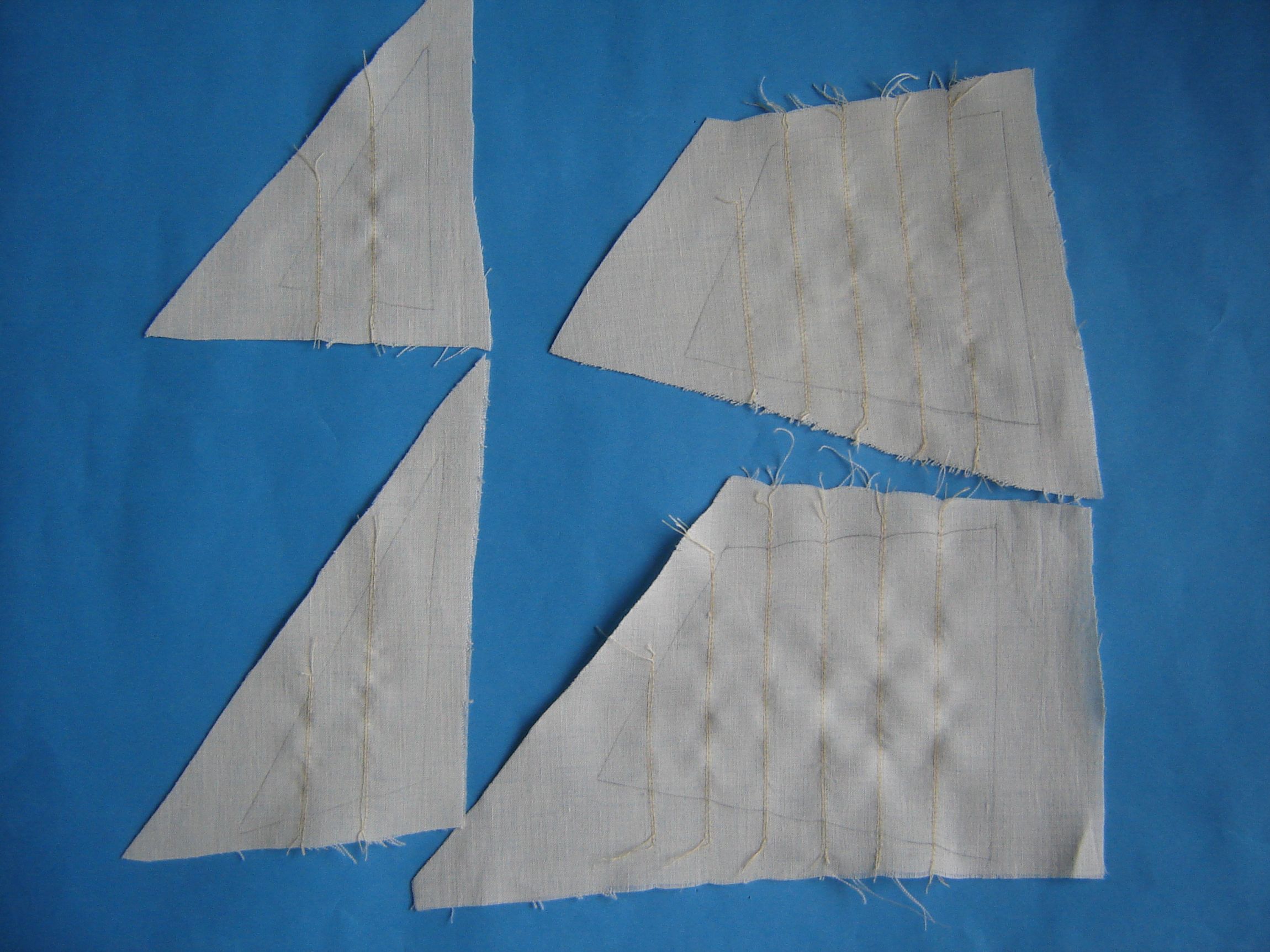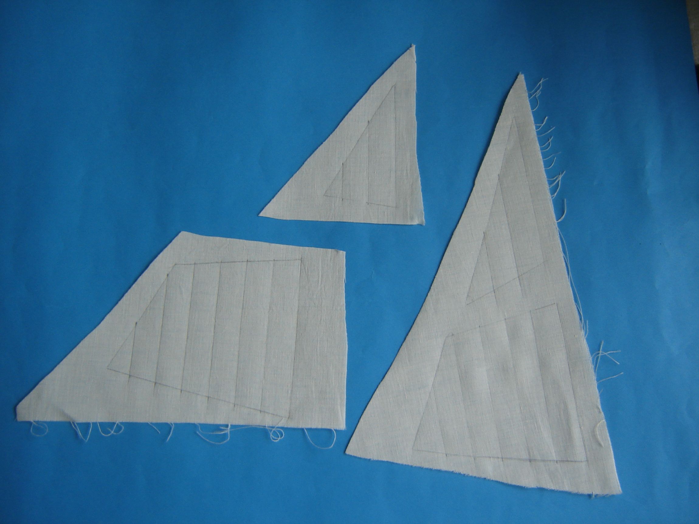 Na podstawie szablonów wyrysowałem żagle na płótnie i zaznaczyłem bryty.