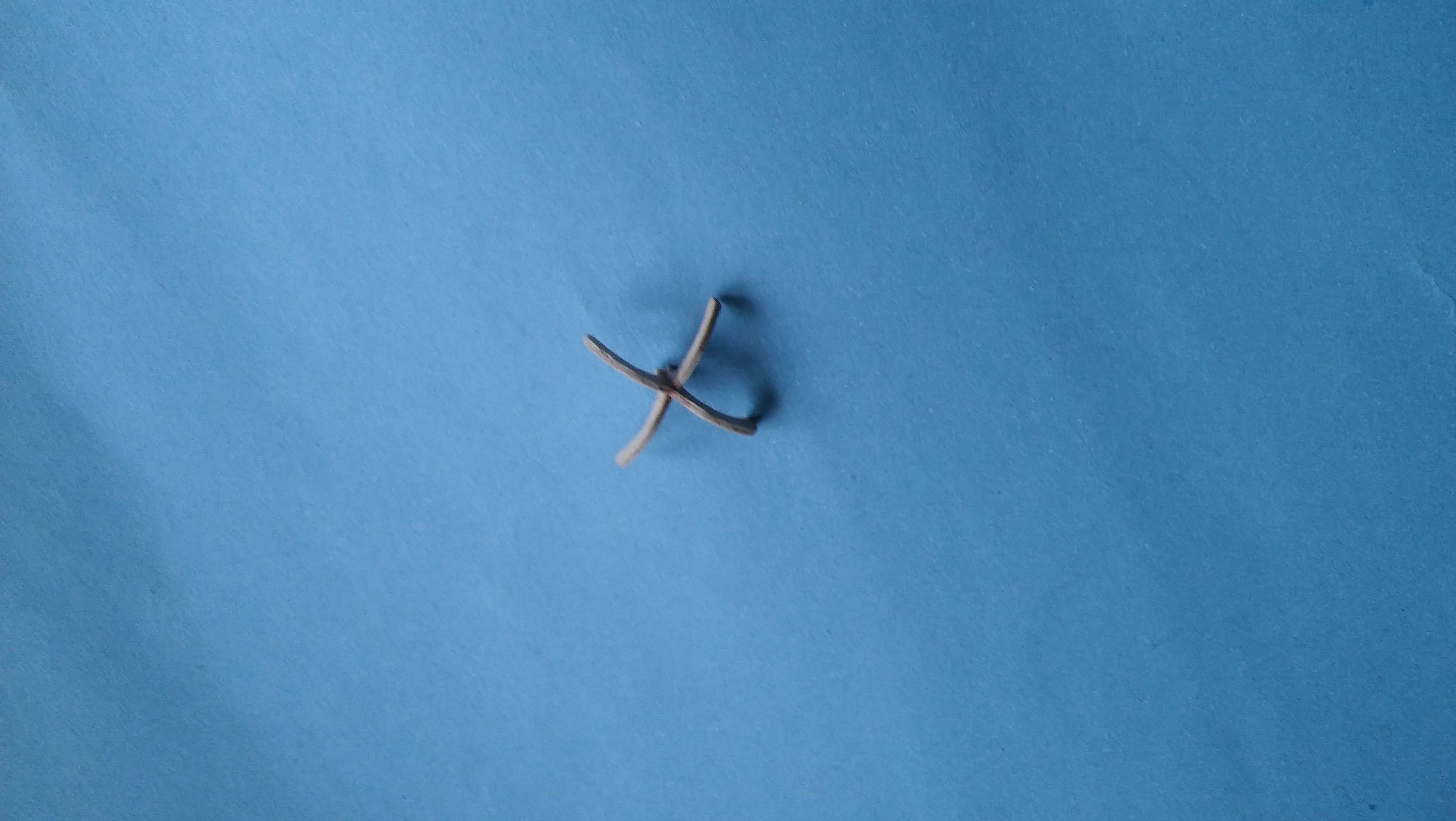 Początkowo chciałem kotwiczkę wydłubać z olchy, ale przy grubości ramion 1,5 mm mogłoby się to też rozpaść. Postanowiłem, że wykonam ramiona kotwiczki z trzech warstw sklejki 0,6 mm. Wyszlifowałem ze sklejki takie coś.