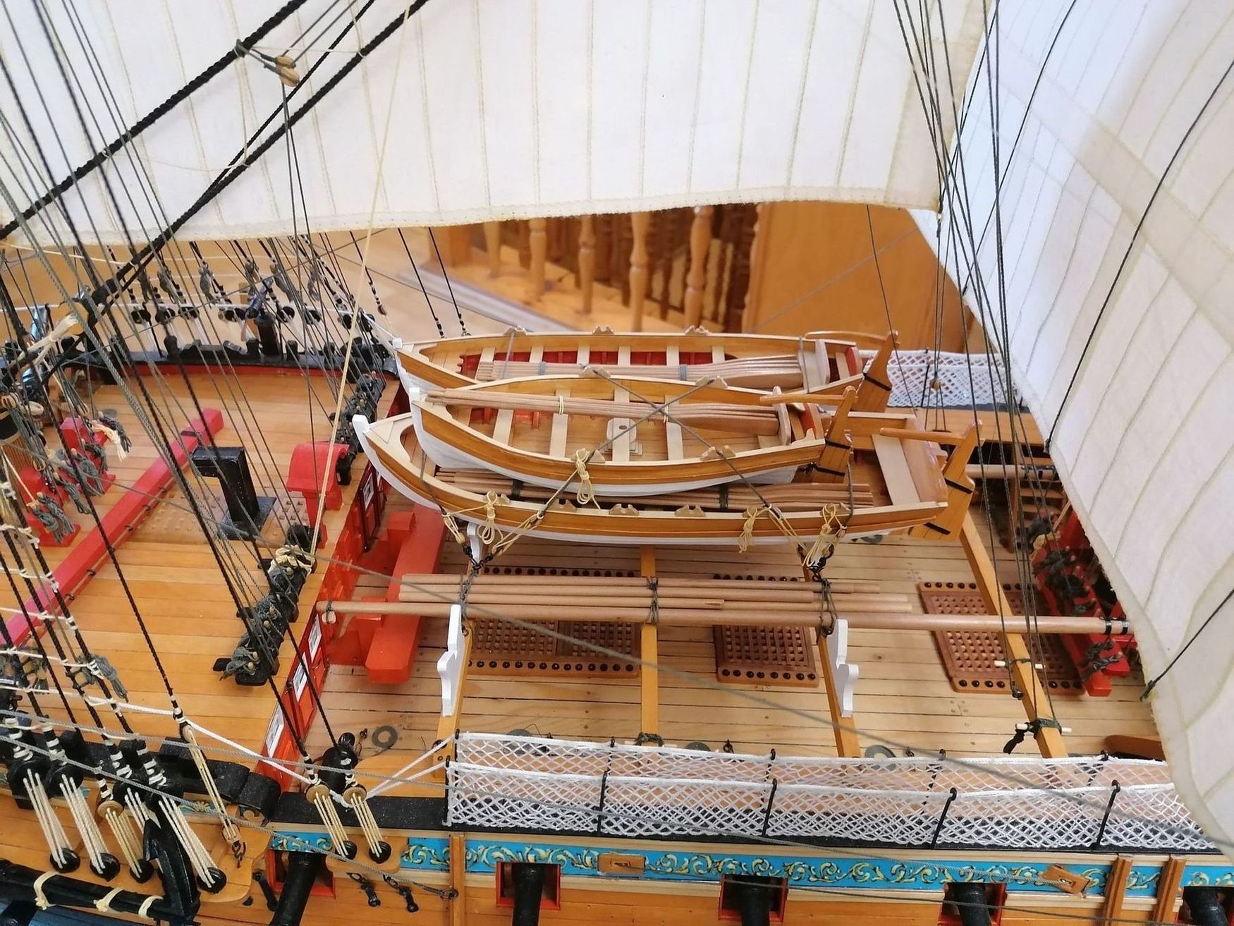 To tylko część, resztę już wcześniej zamontowałem na modelu. W sumie założyłem 172 st. Pozostało jeszcze kilkanaście szt przy grotmaszcie ale niestety nie ma takiego sposobu żeby je teraz tam założyć.