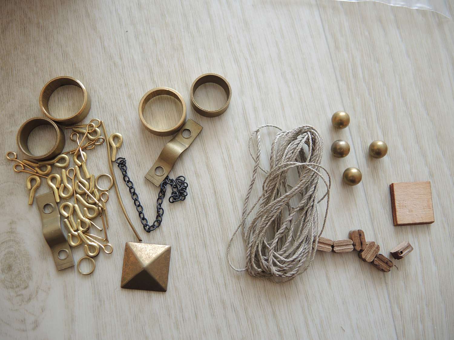 8 mm. Pomiędzy klejenie sznurek 0,5 mm. Wycięte ze sklejki elementy działa.