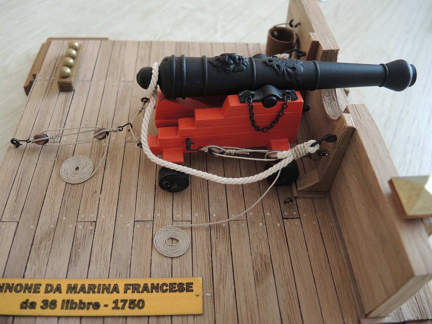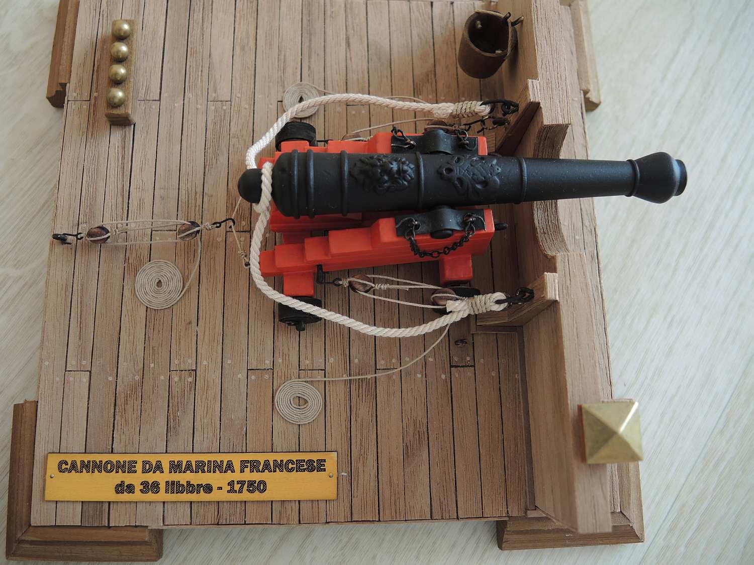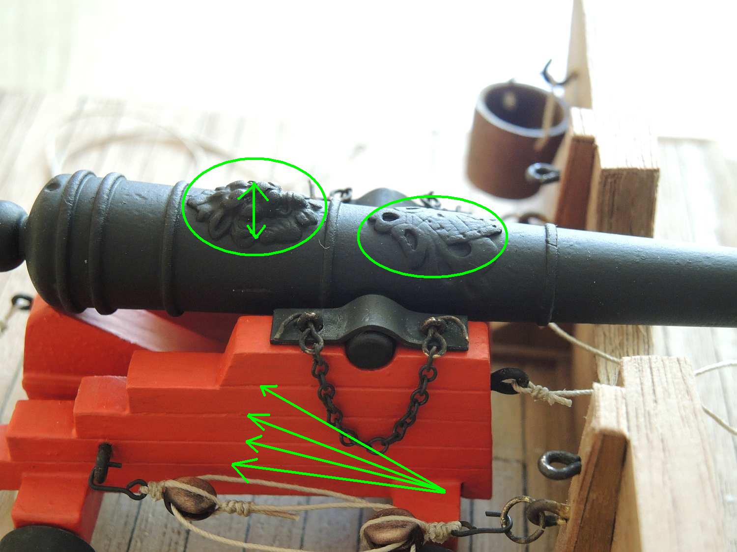 Problem w tym taki, ze Twój zestaw pokazuje ten otwor w nieco innym miejscu niż być powinien, a także jego wygląd był nieco inny - od w/w otworu wiodla plytka rynienka do najbardziej tylnego pierścienia kaskabelu. Zerknij na ilustracje z Boudriota (II tom okrętu 74 działowego) - zaznaczyłem to czarna strzałka na rysunku.