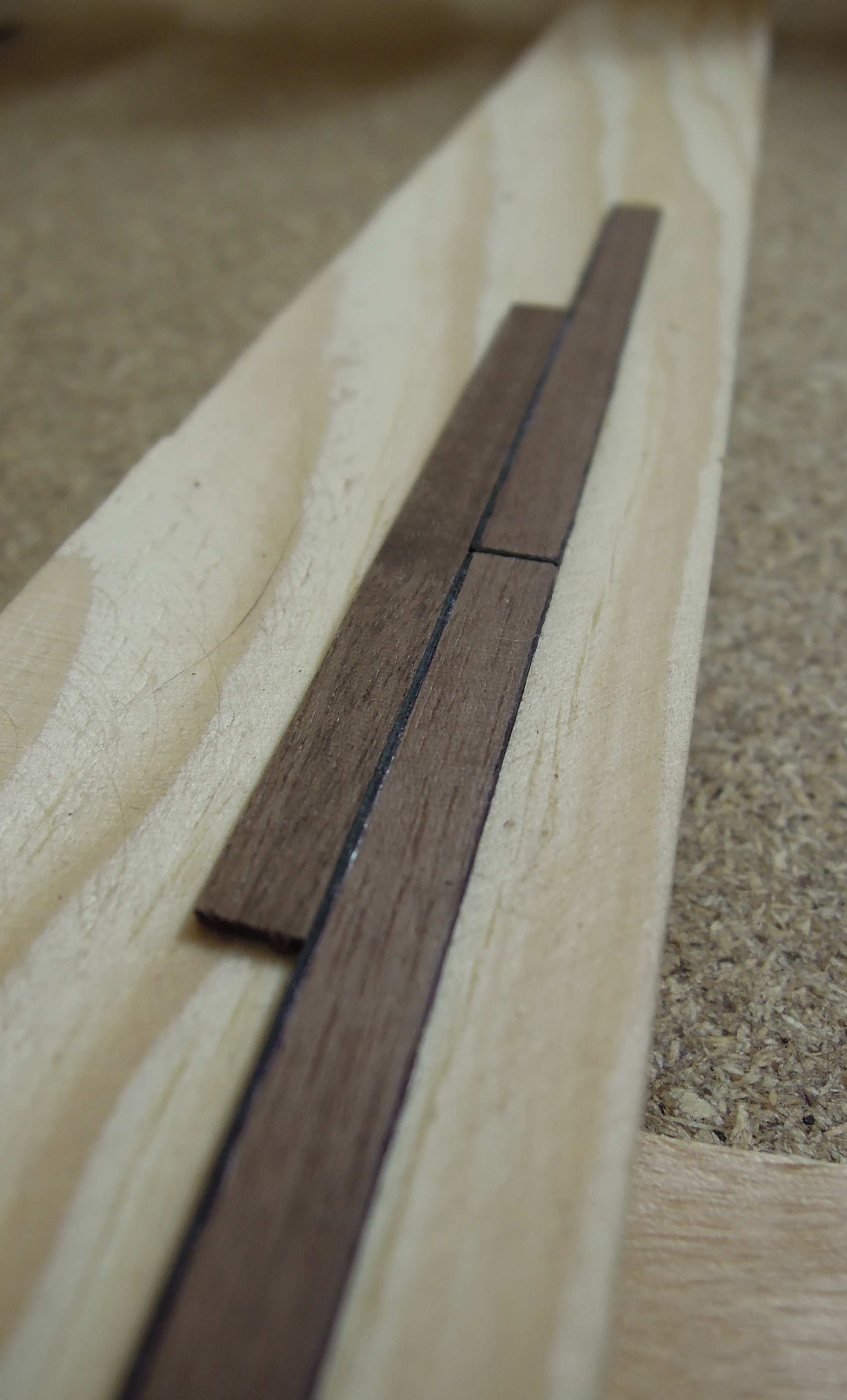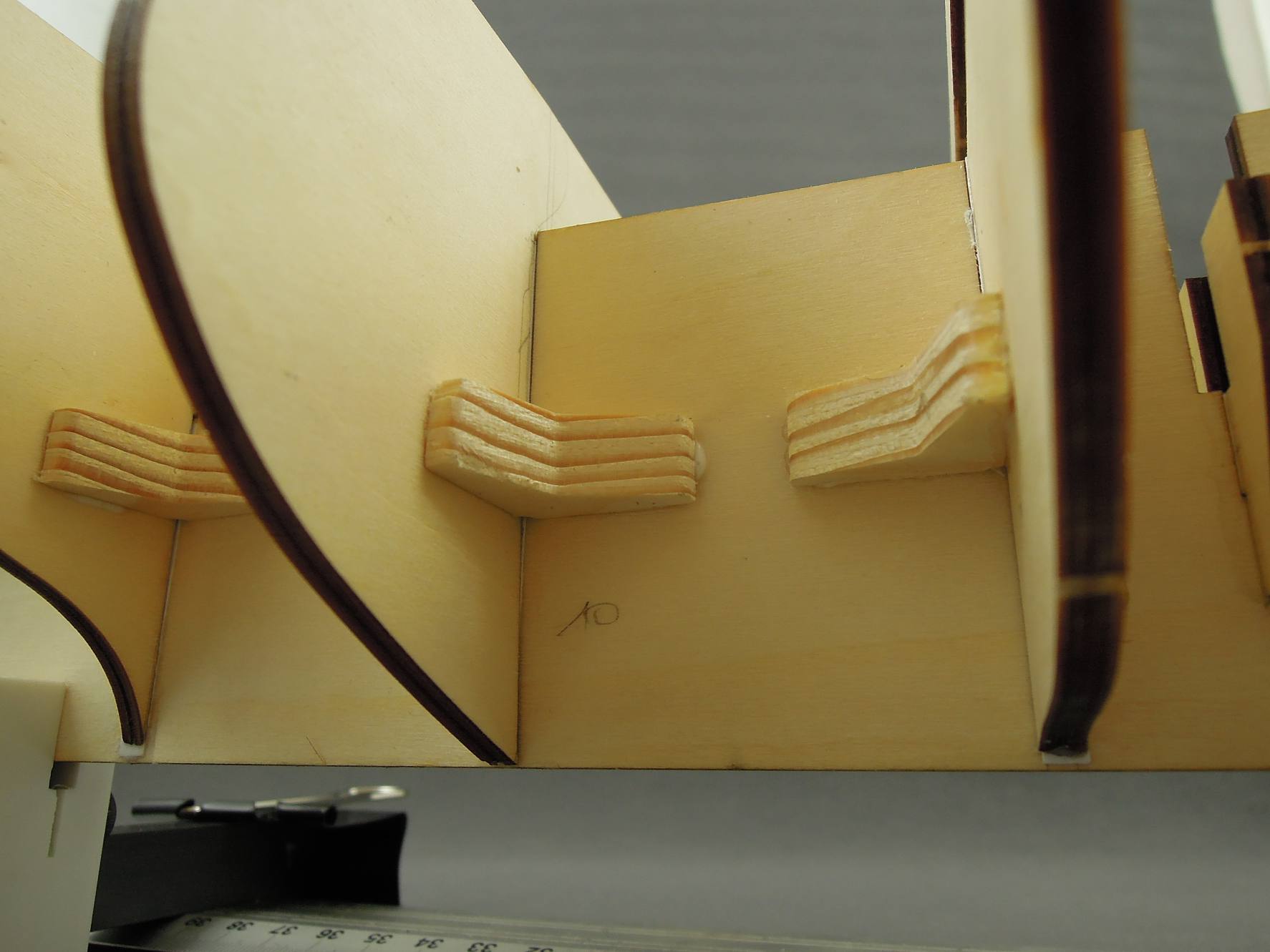 Pasowanie wręg było dość luźne w sumie 0.5 mm na stronę. Dość spora rozbieżność którą "wyzerowałem" podklejając paski papieru.