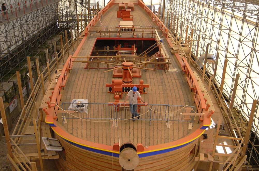 Skala deskowania również podważa hiszpańskie plany. Według których wychodzi 11 rzędów desek po 5 mm. licząc od środka pokładu. Na zdjęciu poniżej można naliczyć 16 rzędów co daje 3 mm z lekką górką.