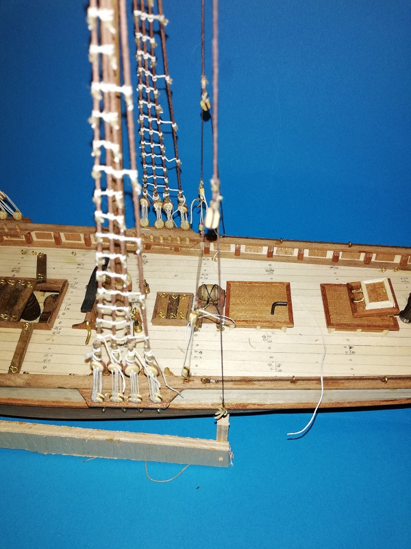 A prócz tego dokończyłem (jak podaje lennath petterson w swojej książce) mizzen backastays i linkę olinowania stałego na którą nazwy nie znalazłem. :cry: