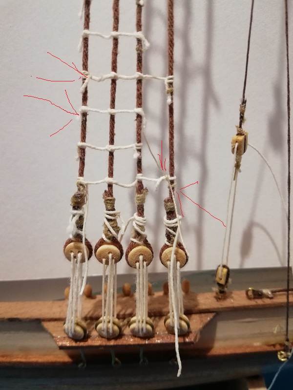 Ukończyłem wanty na grotmaszcie i zacząłem wykonywać wyblinki :twisted: , tak jak poradził mi Leon27