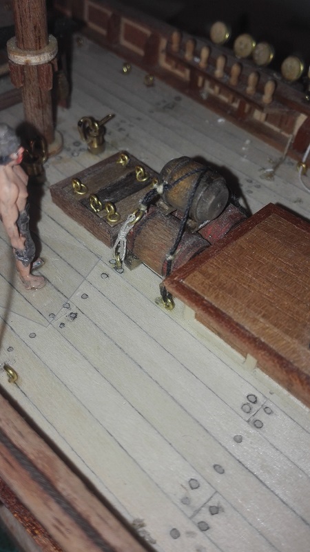 Idąc za ciosem, zerwałem poprzednie pompy zęzowe i zrobiłem nowe, na wzór tych z Planów zamieszczonych modelarstwie okrętowym. Tak samo mocowanie beczek do pokładu. http://santisimatrinidad.jun.pl/viewtop ... c&start=48 "Lepiej późno niż wcale". Czyli po naszemu spie....... to naprawiam.