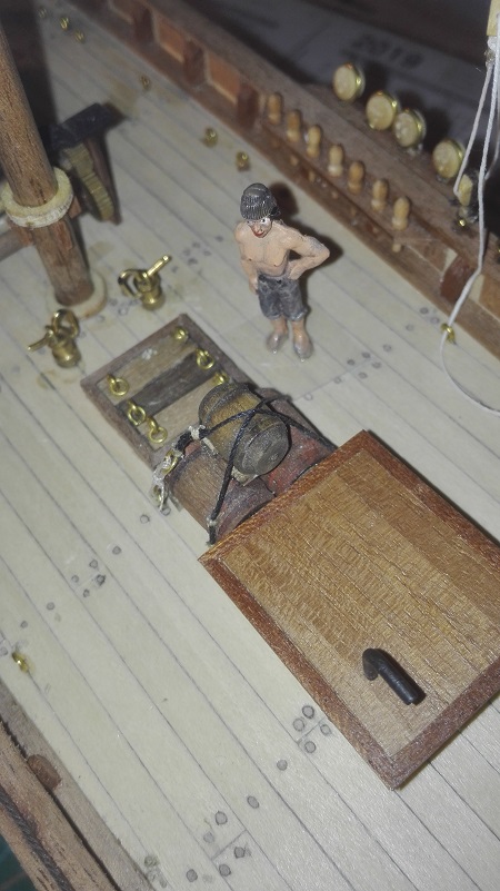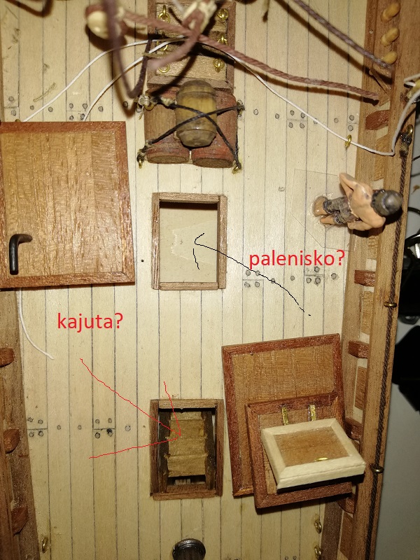 Co do planów wnętrzności, nie posiadam żadnych materiałów właśnie o pokojówce, beczki w ładowni (jak to przypuszczam, nie mam pewności czy to ładowania) zamieściłem właśnie na moich przypuszczeniach. Tak samo z paleniskiem. Więc wzoruje się na podobnych szkunerach z podobnego okresu...