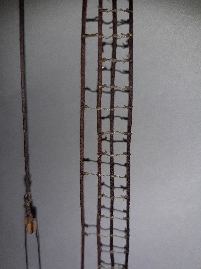 Zacząłem wykonywać wanty na fokmaszcie, jeszcze tylko naprężenie i mogę zabrać się za wyblinki :twisted: Wyblinek jeszcze nie zabezpieczyłem CA