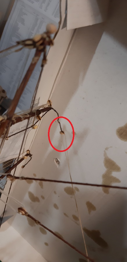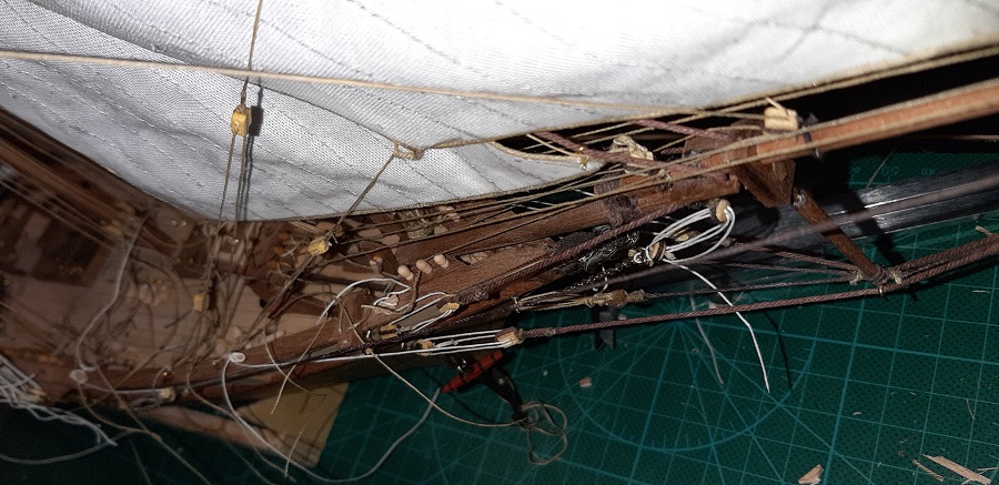 Wykonałem wszystkie odciągi głównego żagla fokmasztu.