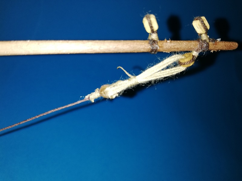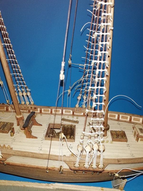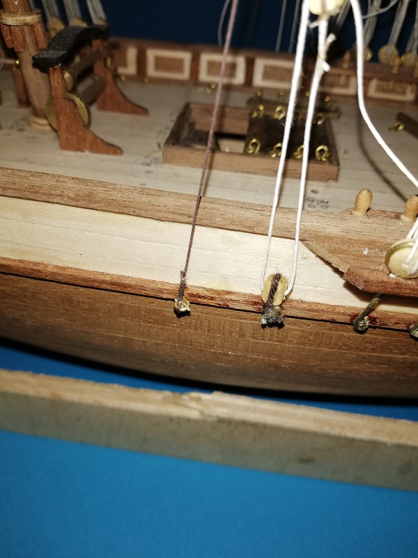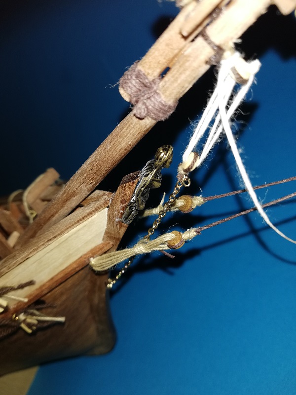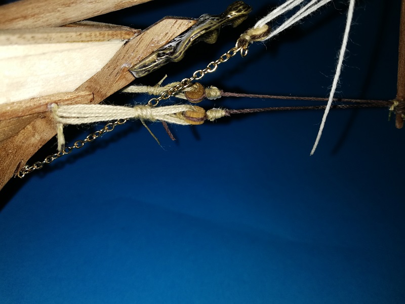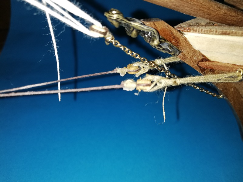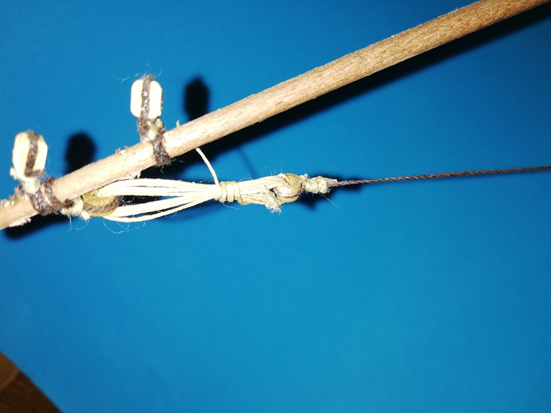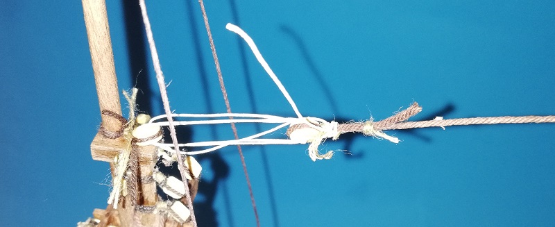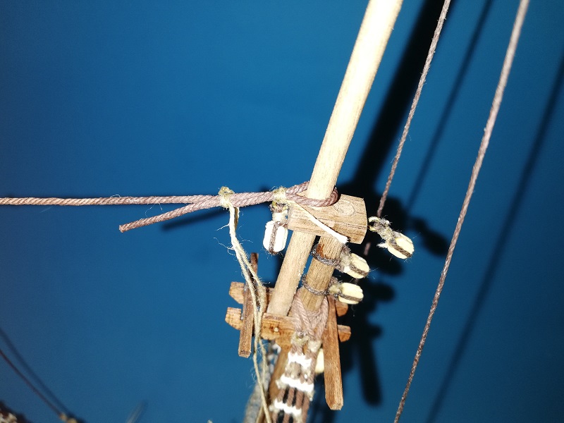 A prócz tego dokończyłem (jak podaje lennath petterson w swojej książce) mizzen backastays i linkę olinowania stałego na którą nazwy nie znalazłem. :cry: