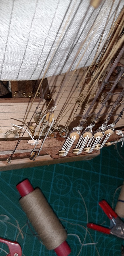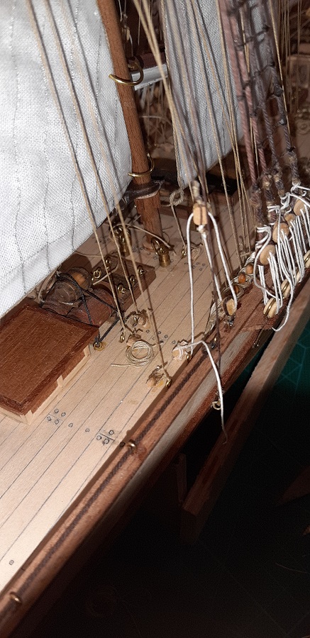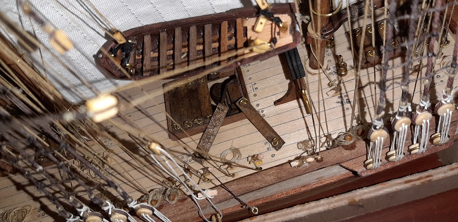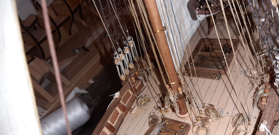 Ukończyłem zwoje lin i buchty na jednej z burt modelu.