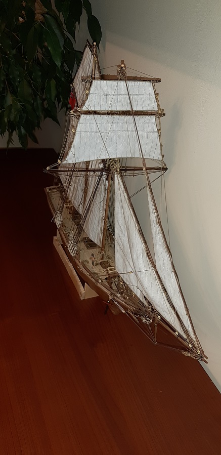 Ukończyłem model który budowałem około 1rok i 3 mies. Czy to koniec? Niby tak ale nie do końca. Szkuner ukończyłem, ale czegoś brakuje. Tak brakuje podstawki. Zastanawiałem się czy nie czekać aż ową dostanę ale, trzymanie w nie pewności, a przy okazji prowadzenie innej relacji mogło by się wydawać dziwne. Tym bardziej przez więcej niż 7 dni.... Fotki podstawki w formie "relacji" postaram się zamieścić oczywiście jak ją dostane.... ;)