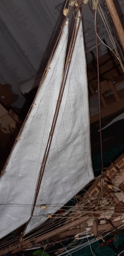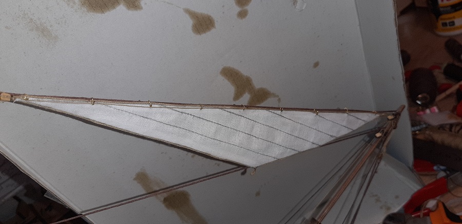 Zabrałem się za dokańczanie żagielków, tak znam ich nazwy ale podam je dopiero podczas stawiania na modelu.... Trzeba jeszcze m.i.n zrobić liklinę, ołówek zgumkować itp...