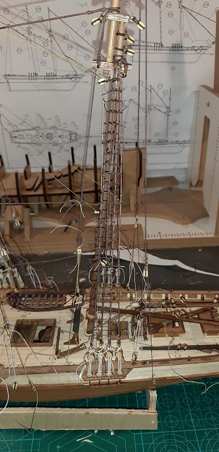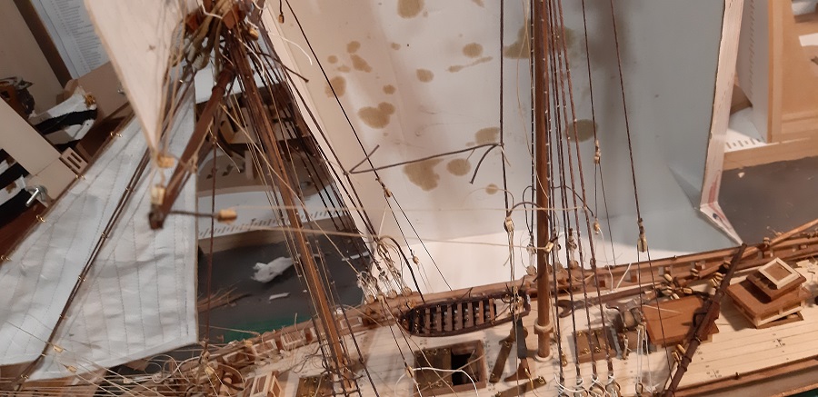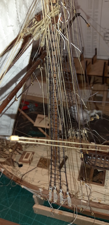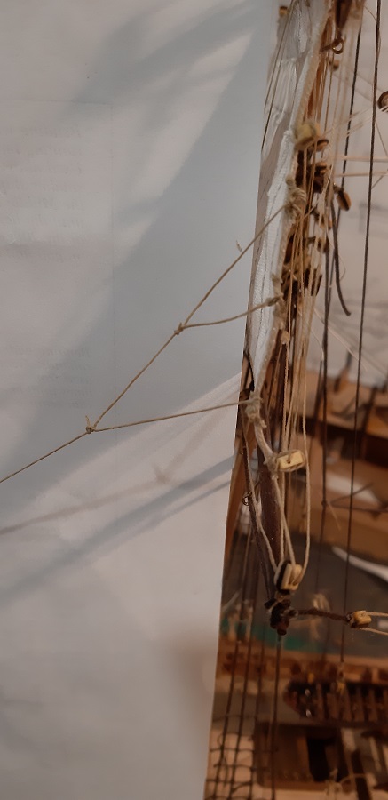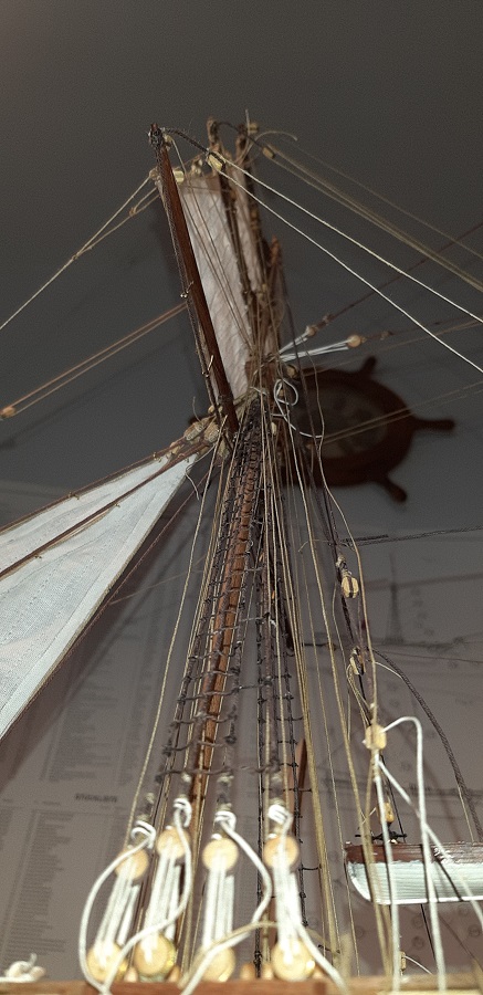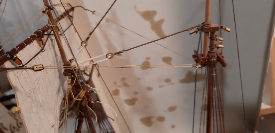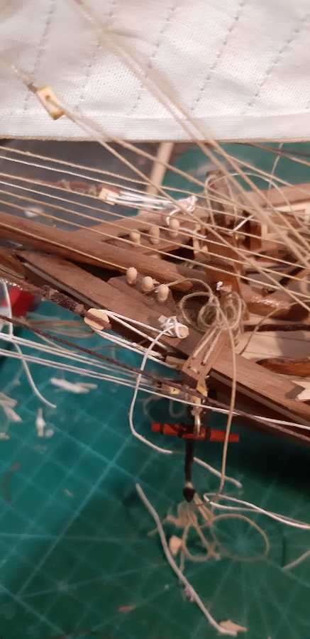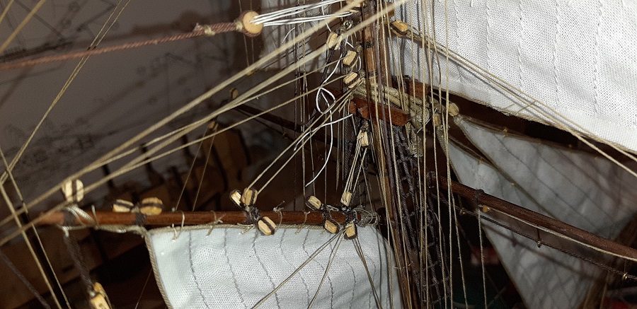 Wykonałem wszystkie odciągi głównego żagla fokmasztu.