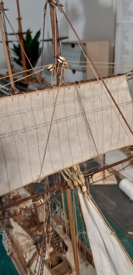 Wykonałem szoty głównego żagla fokmasztu i zrobiłem mały postęp przy wyblinkach