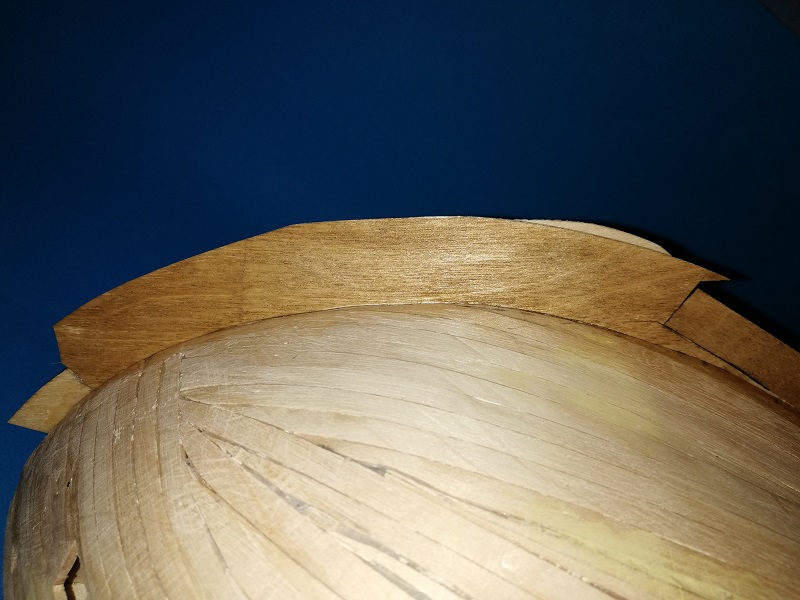 Sorry, że muszę Cię rozczarować, ale położyłeś poszycie błędnie - typowo dla początkującego. Poza tym, rufa u Ciebie zachodzi na poszycie, a powinno być odwrotnie.