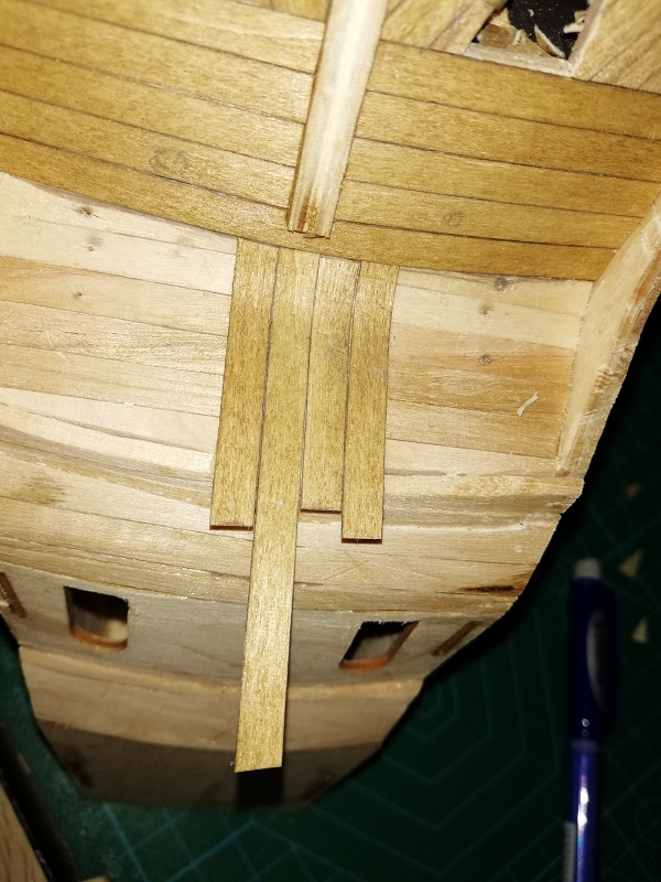 Na wzór "the royal warship Vasa" i modelu 1/10 z muzeum Vasy, w przeciwieństwie do instrukcji, która kazała by listewki były równolegle do poprzednich :lol: ... .