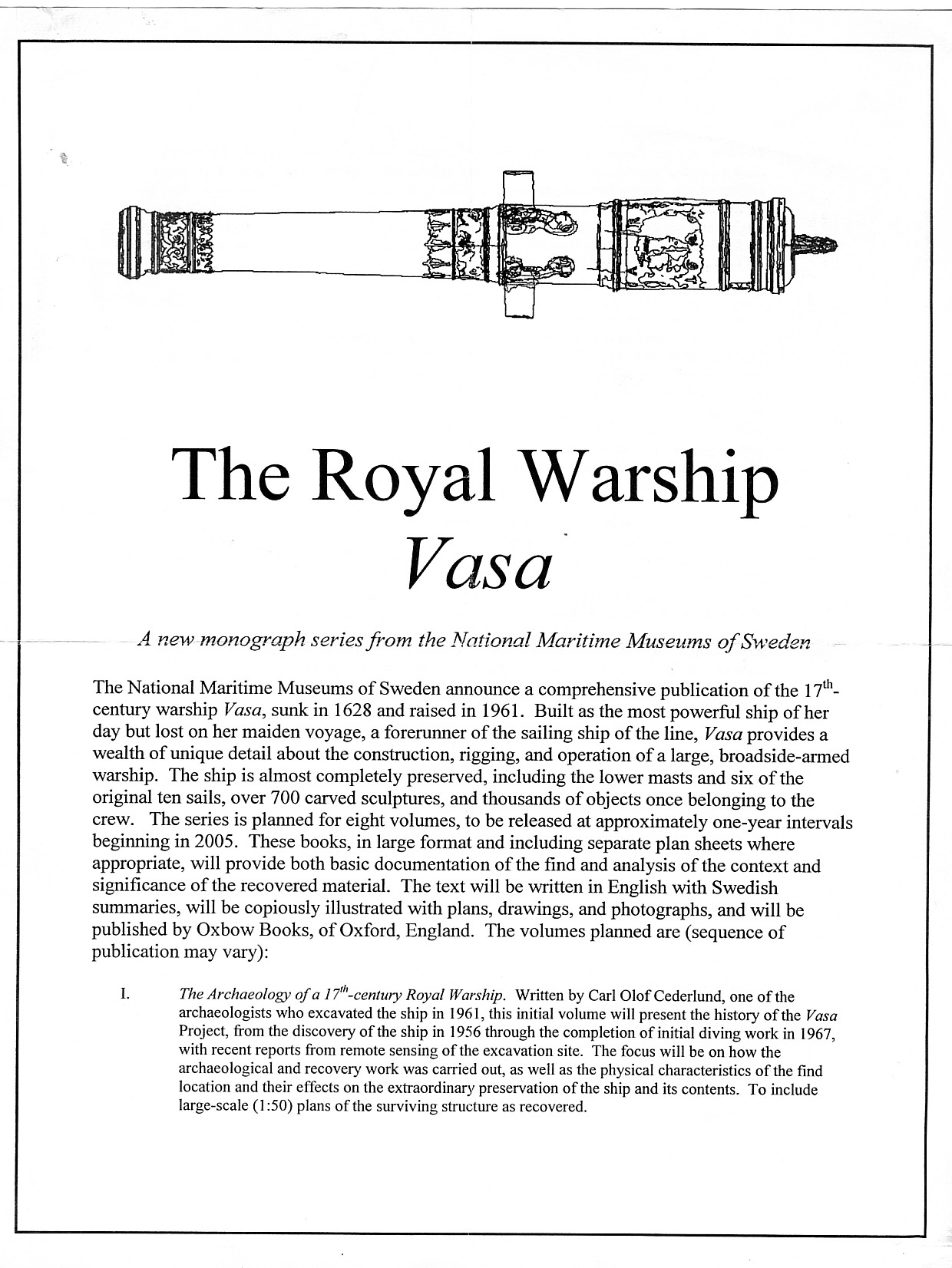 Carl Olof Cederlund "Vasa I: "The Archaeology of A Sweedish Royal Ship of 1628"