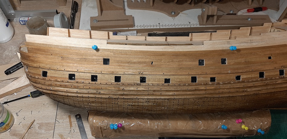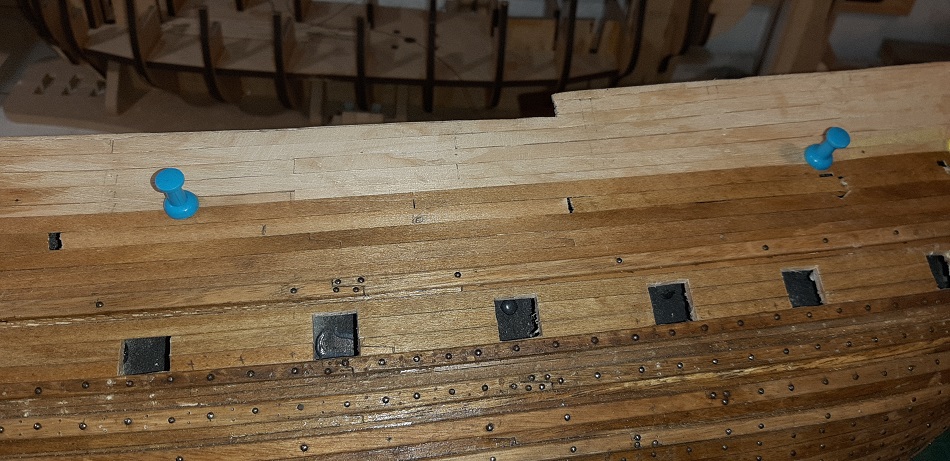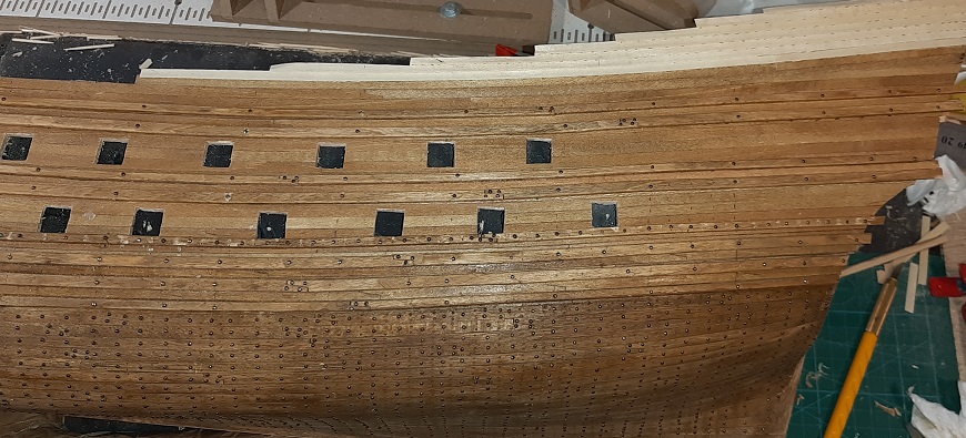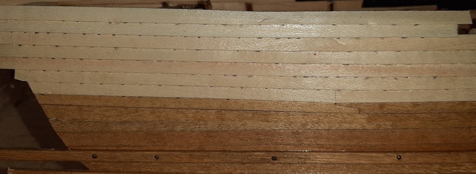 Zacząłem kołkowanie rufy, wzorując się na modelu 1/10 w muzeum Vasy i książce "The royal warship Vasa"