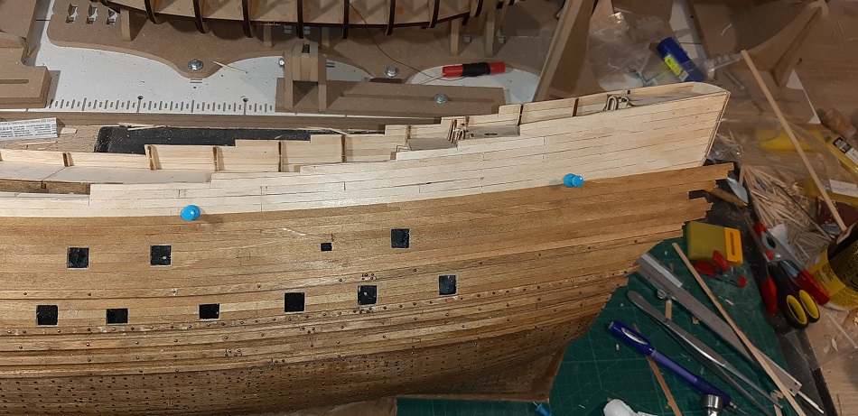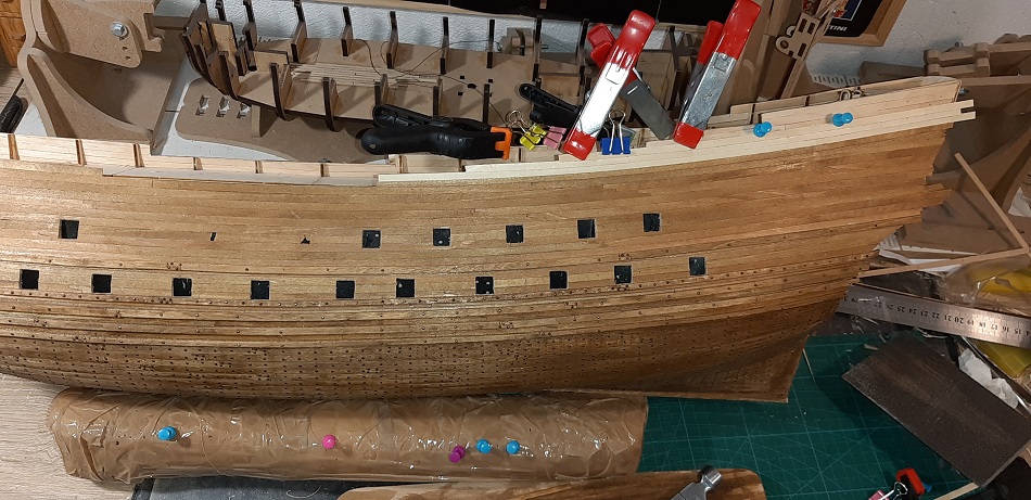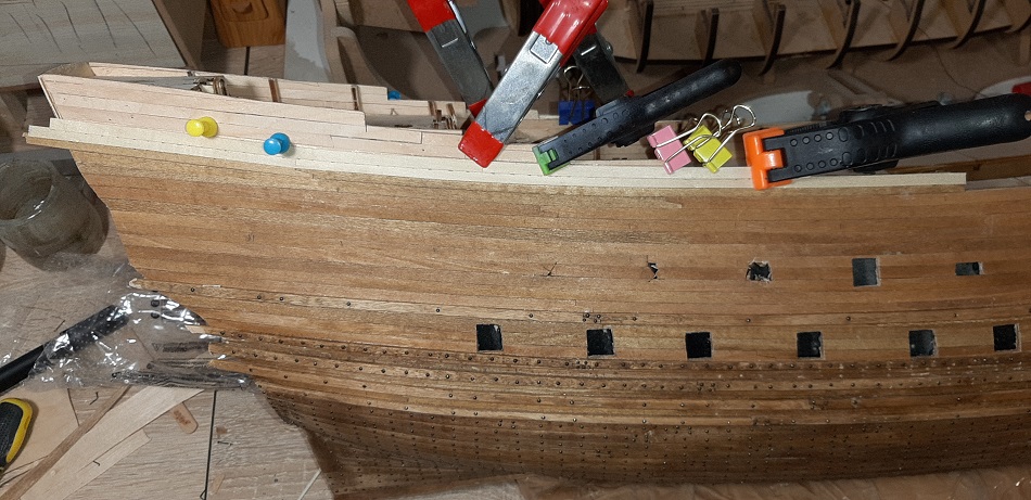 Koniec poszycia zakładkowego jak i odbojnic, teraz tylko kołkowanie :twisted:
