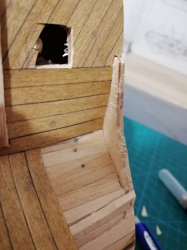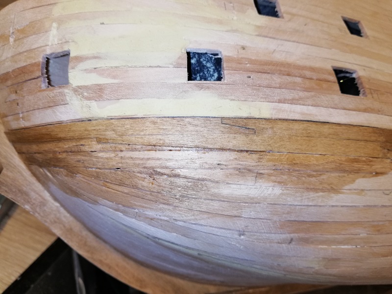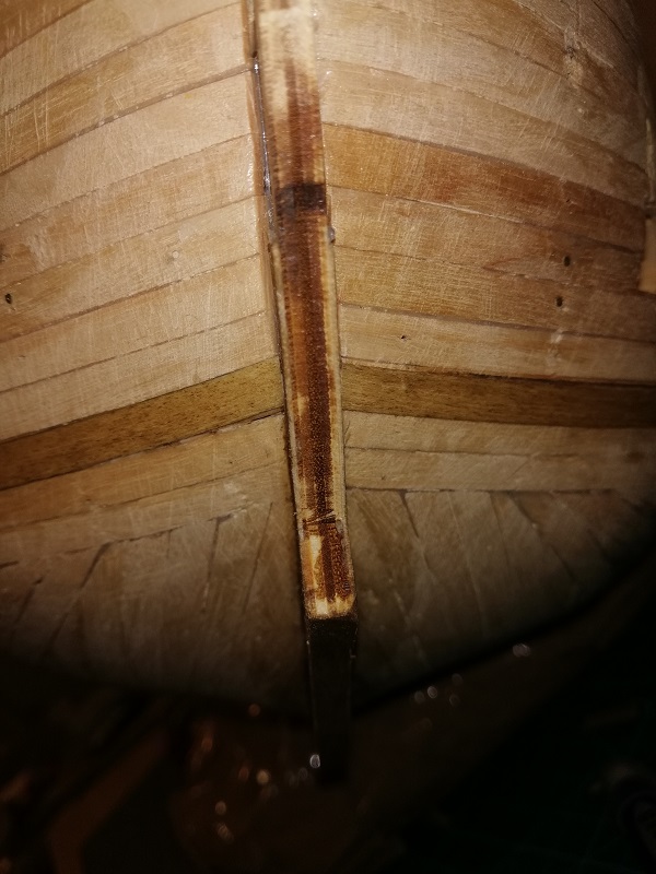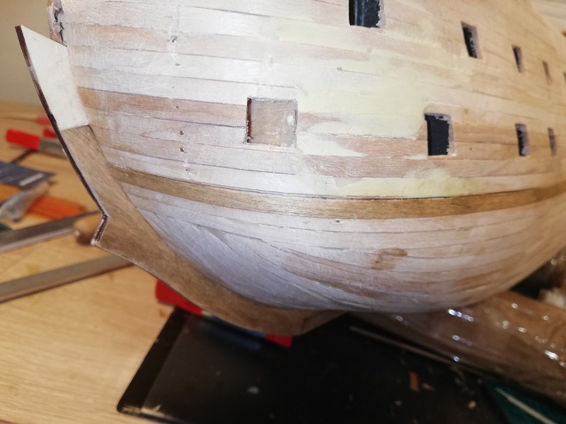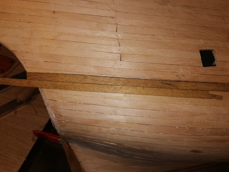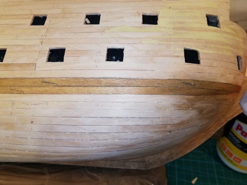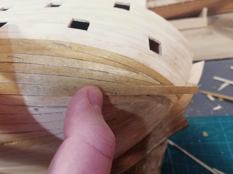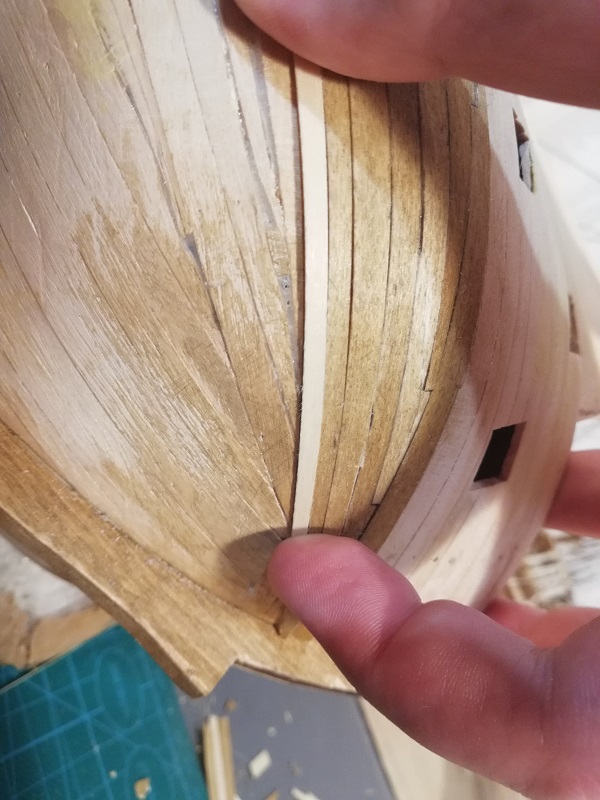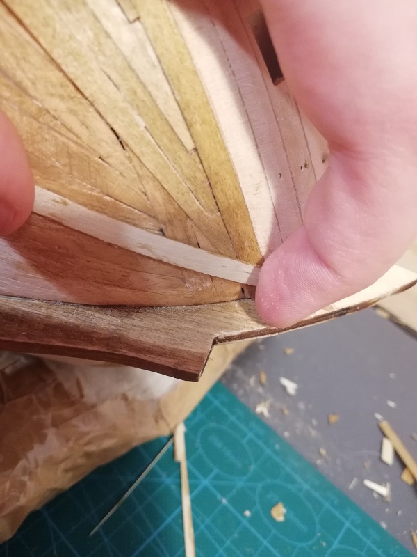 Ukończyłem 2 rząd planek na obu burtach, przymierzyłem stealera na dziobie.