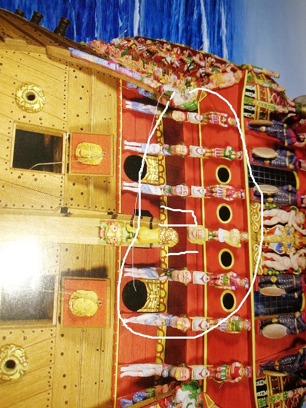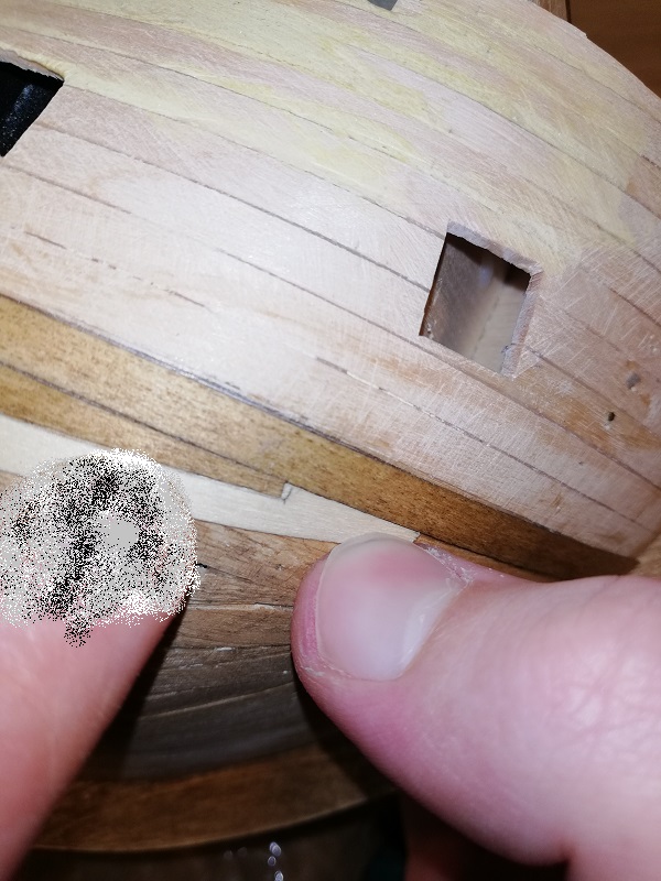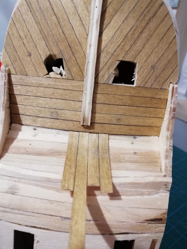 Na wzór "the royal warship Vasa" i modelu 1/10 z muzeum Vasy, w przeciwieństwie do instrukcji, która kazała by listewki były równolegle do poprzednich :lol: ... .