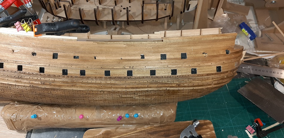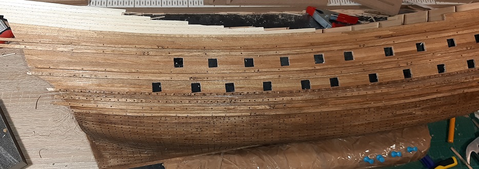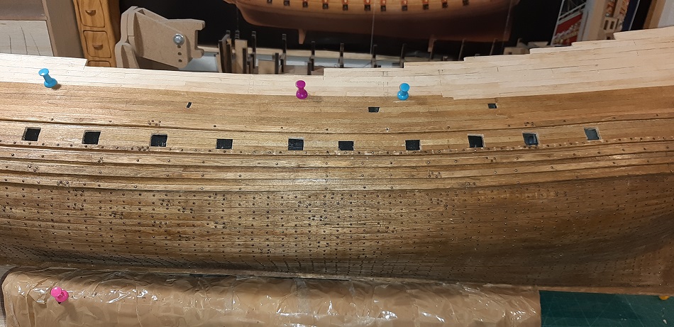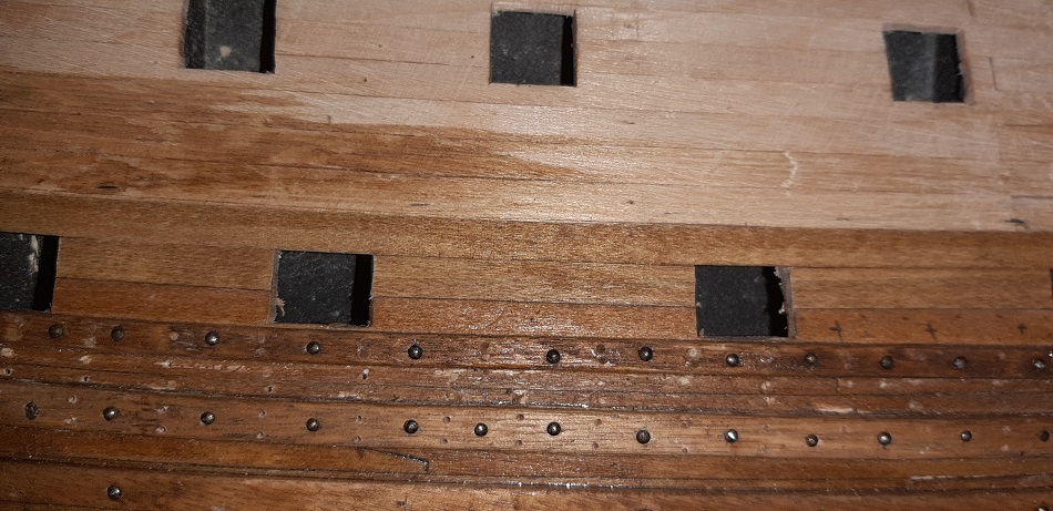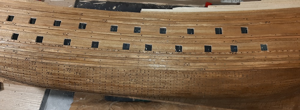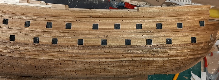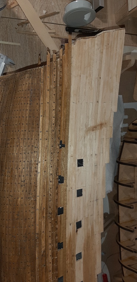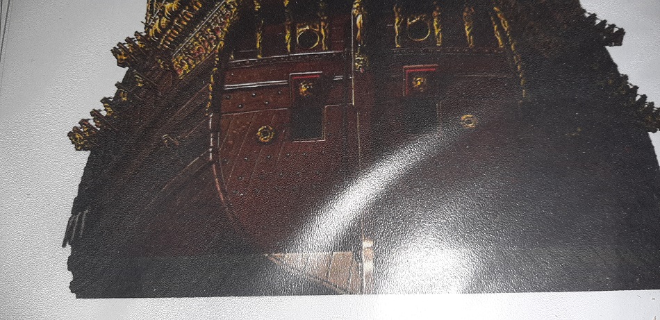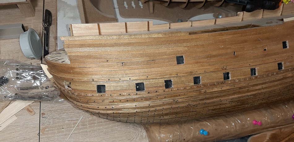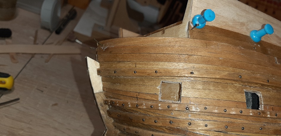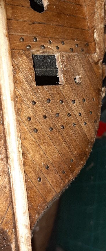 Zacząłem kołkowanie rufy, wzorując się na modelu 1/10 w muzeum Vasy i książce "The royal warship Vasa"